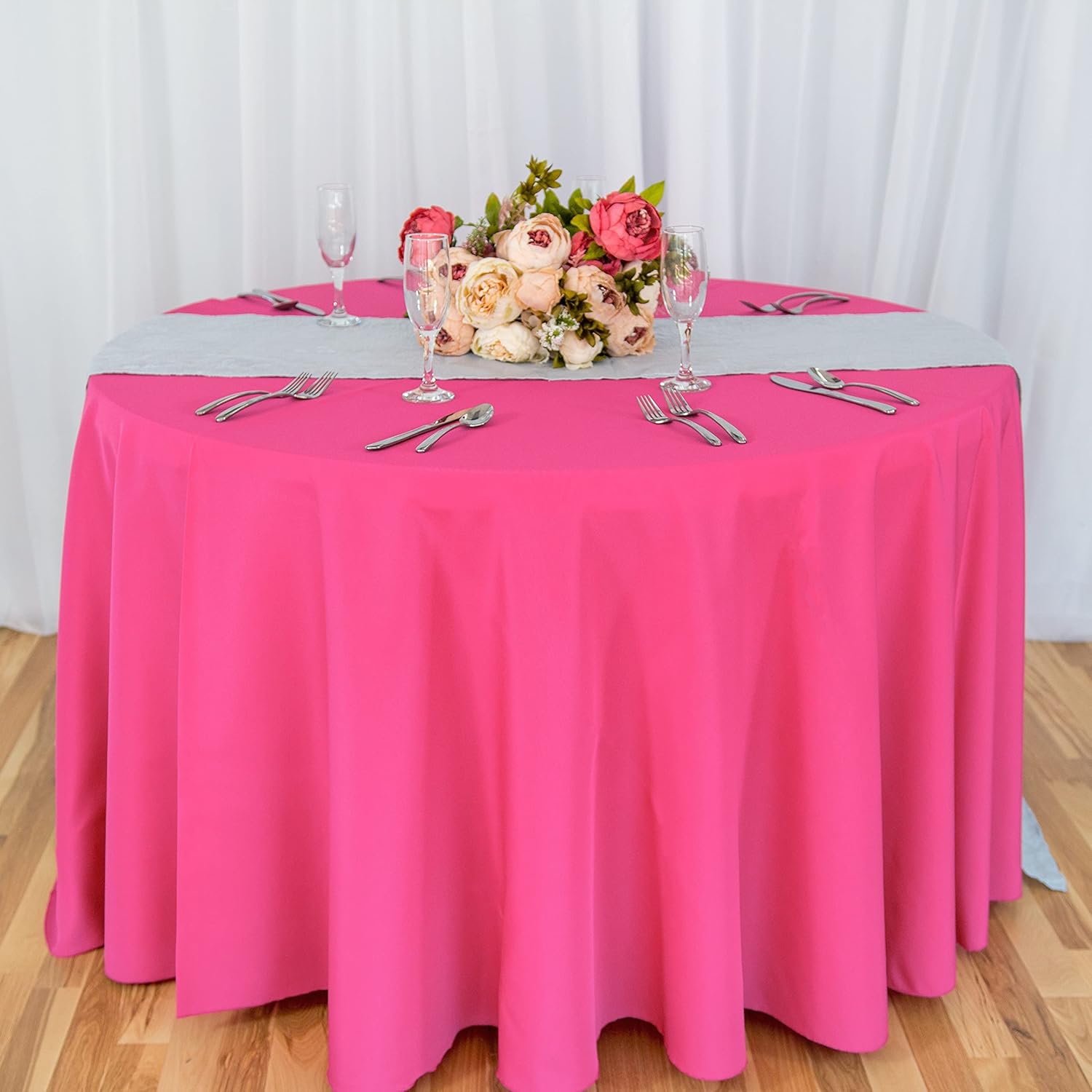 LinenTablecloth 108-Inch Round Polyester Tablecloth Fuchsia