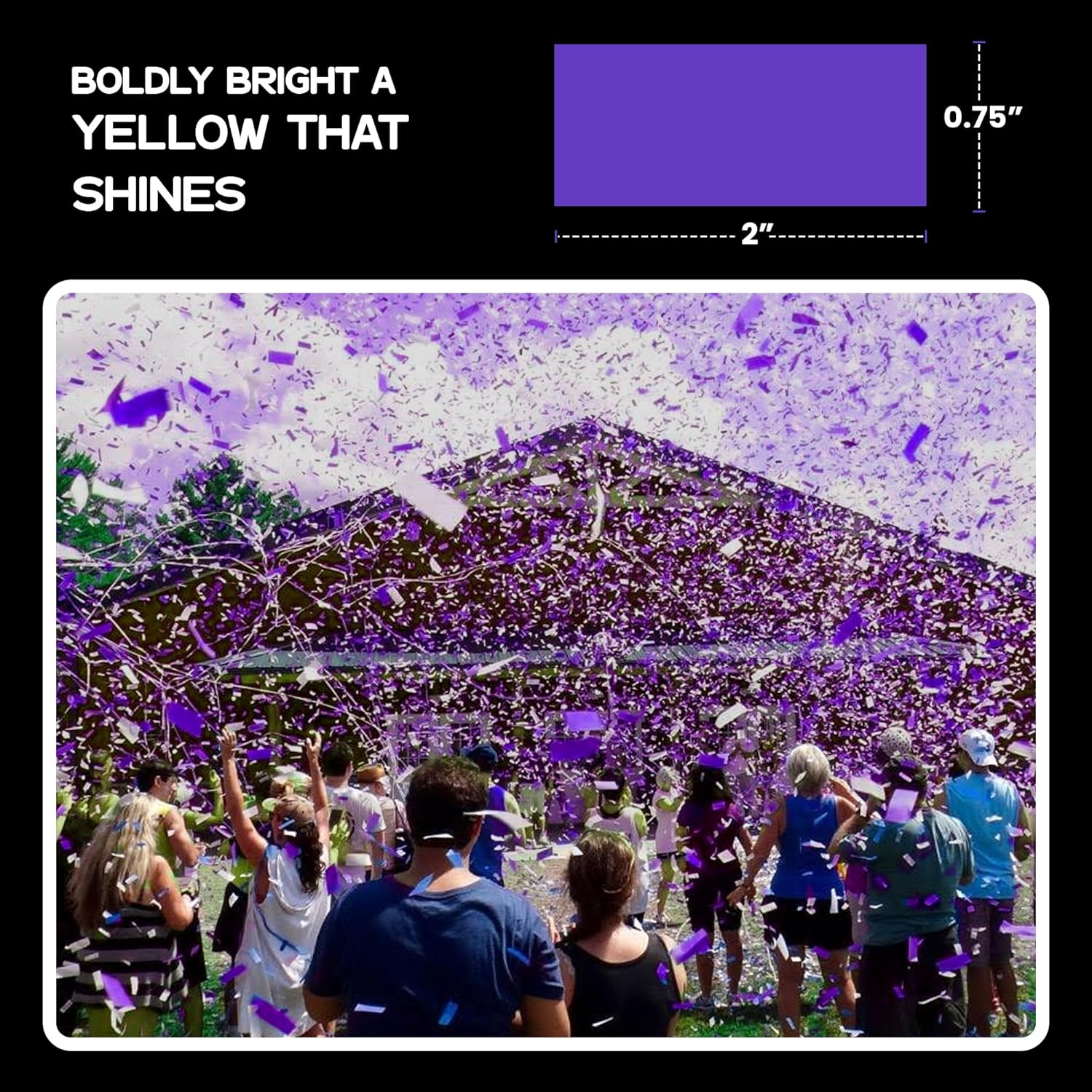 - Precision-Cut Shape for Beautiful Coverage: The tissue paper confetti features a 2" x ¾" rectangular cut that glides gracefully through the air. Whether tossed by hand or launched with party accessories, it delivers an eye-catching display across stages, dance floors, and celebration spaces with elegant, floating movement.