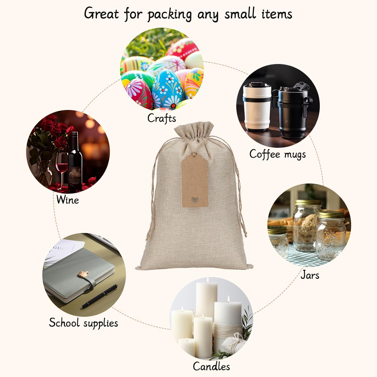 Burlap Bags with Drawstring - 20Pcs 8x12 Gift Sacks for Wrapping Halloween Favors, Breads, Seeds, Mason Jars, For Birthday, Wedding, Rodeo Themed Party or Household Use