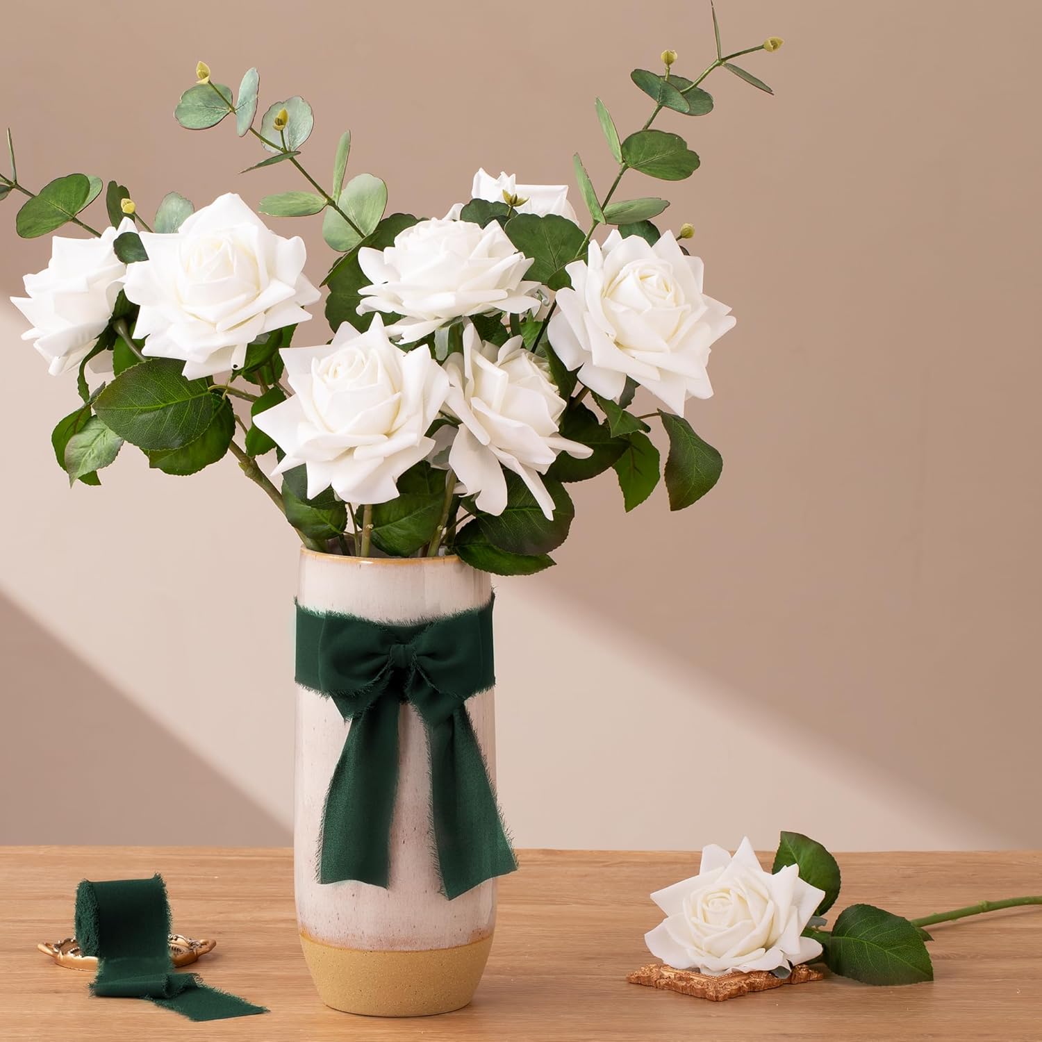 - 【Size and Color】Each roll of chiffon ribbon is 2 inches wide and 7 yards long, perfect for various creative uses such as making bows, decorating wreaths, and DIY crafts. This set includes 3 rolls dark green ribbons. These vibrant frayed ribbons add a rustic charm to your creations, ideal for bouquet wrap or gift ribbon.