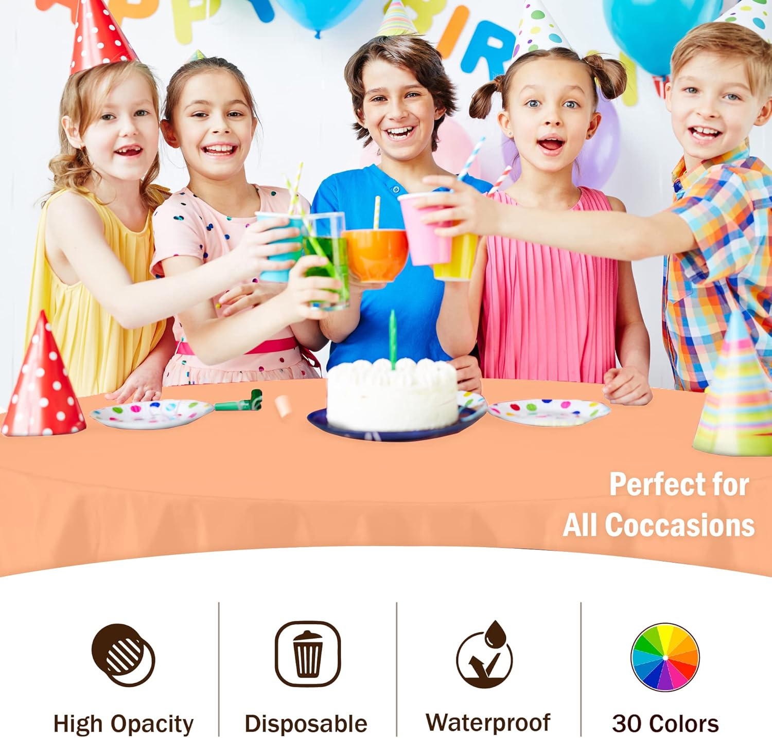 - INCLUDES: 12 heavy duty disposable Peach plastic table cloth that will cover your table for protection and is great for homes with children, kitchen tables, dinning tables, dinners, family outings. bbq's and more!!!