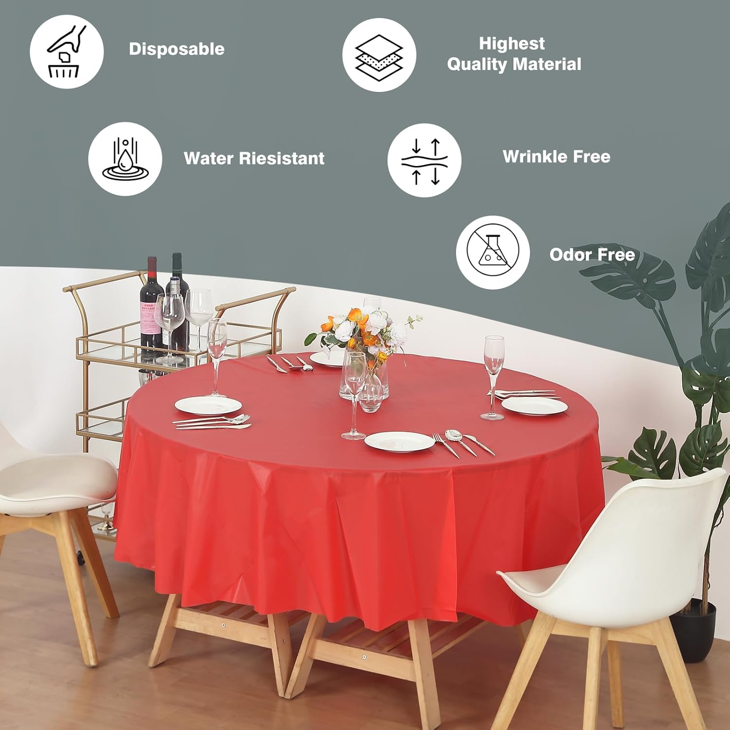 - Plastic Table Cover. Color: Red. Round 84". 4 pack.