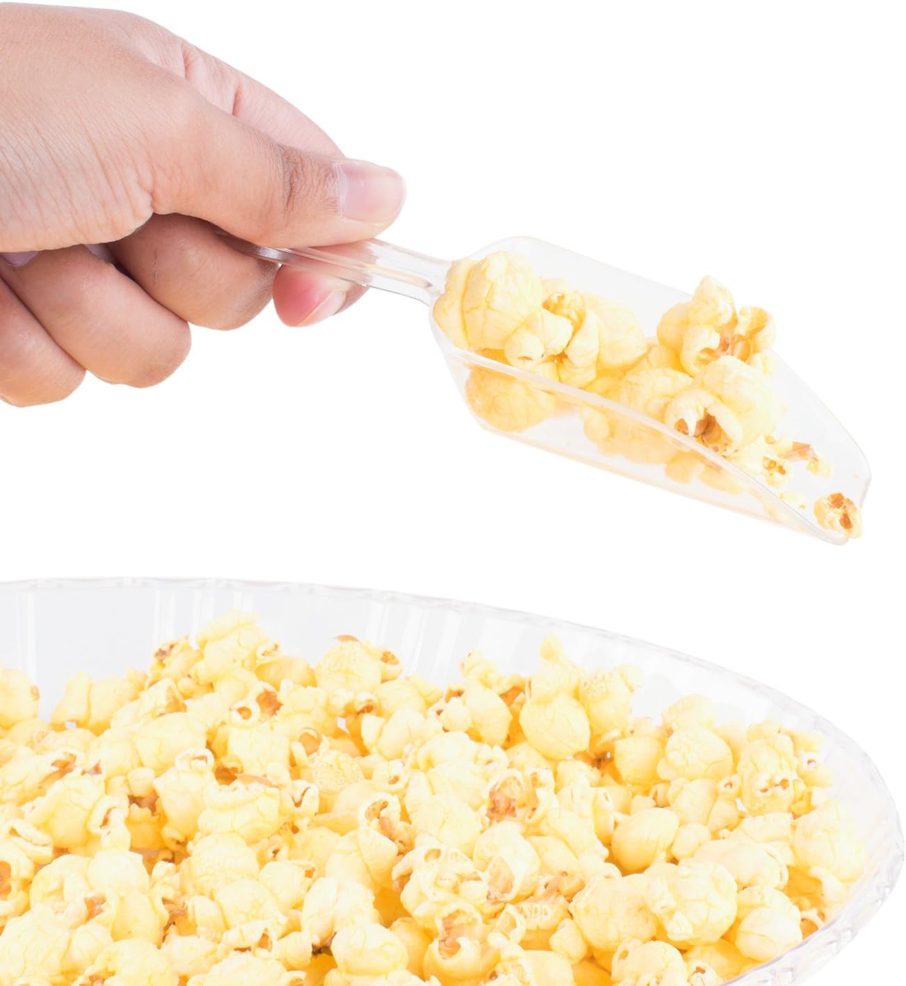 - Let your guests scoop out their favorite candies and treats with these attractive clear plastic candy scoops. An essential for a food stand, a diner, as restaurant supplies and even a school or carnival concession stand. Clear plastic containers for all your food service and sampling needs.