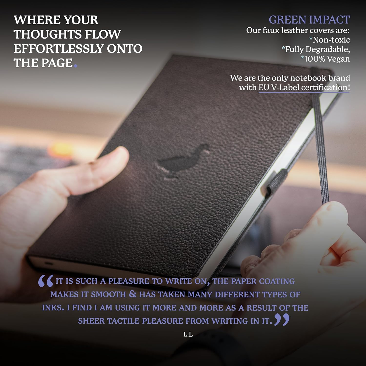- SUSTAINABLY SOURCED, ENVIRONMENTALLY CONSCIOUS: Made from recyclable materials and FSC certified paper, our notebooks are Vegan Certified. Dingbats* Notebooks Ltd donates 2% of UK sales to WWF-UK, supporting environmental conservation.
