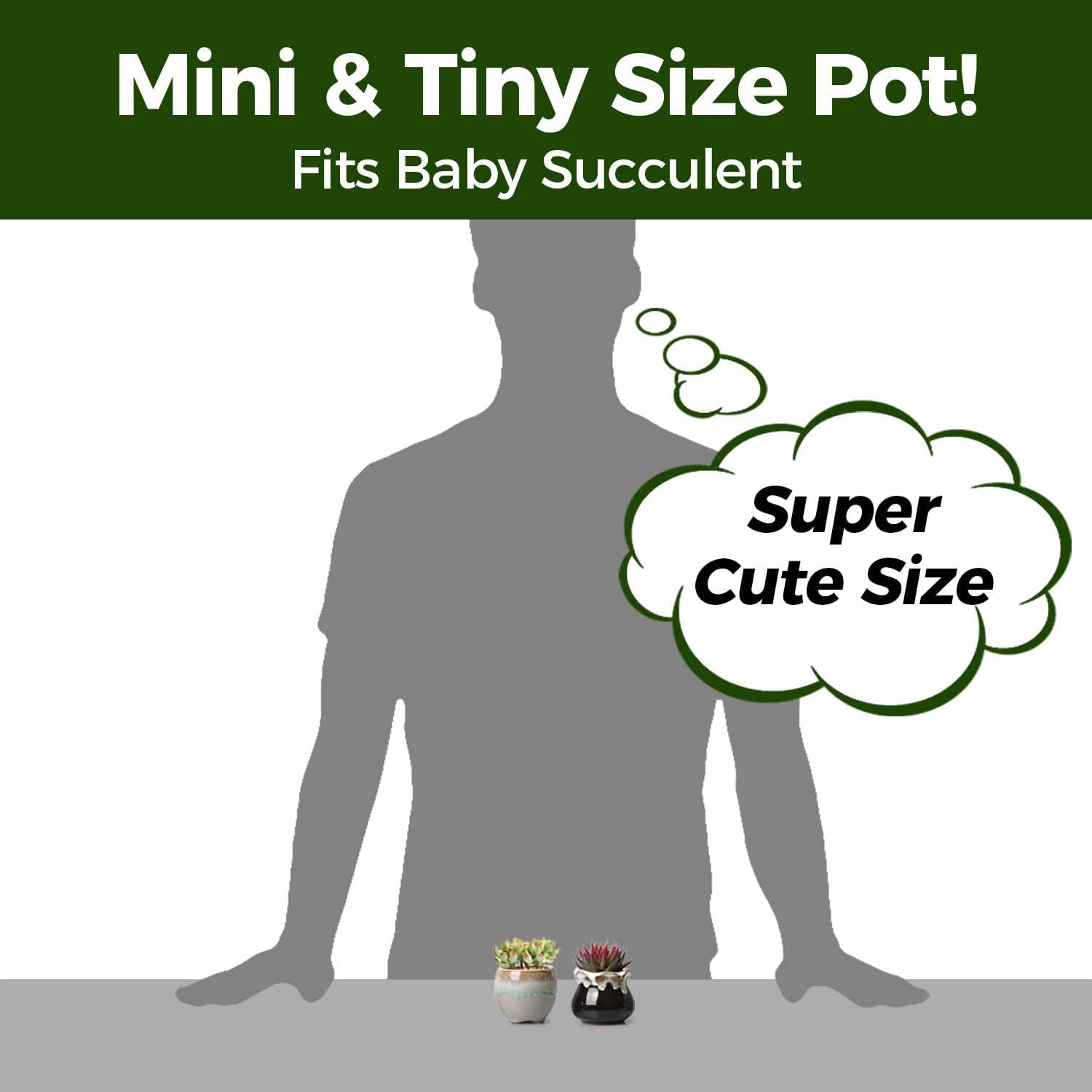 T4U Mini Ceramic Succulent Pots with Drainage - Set of 6, Tiny Pots for Plants, Home and Office Decor, Plant Lover Gifts for Women