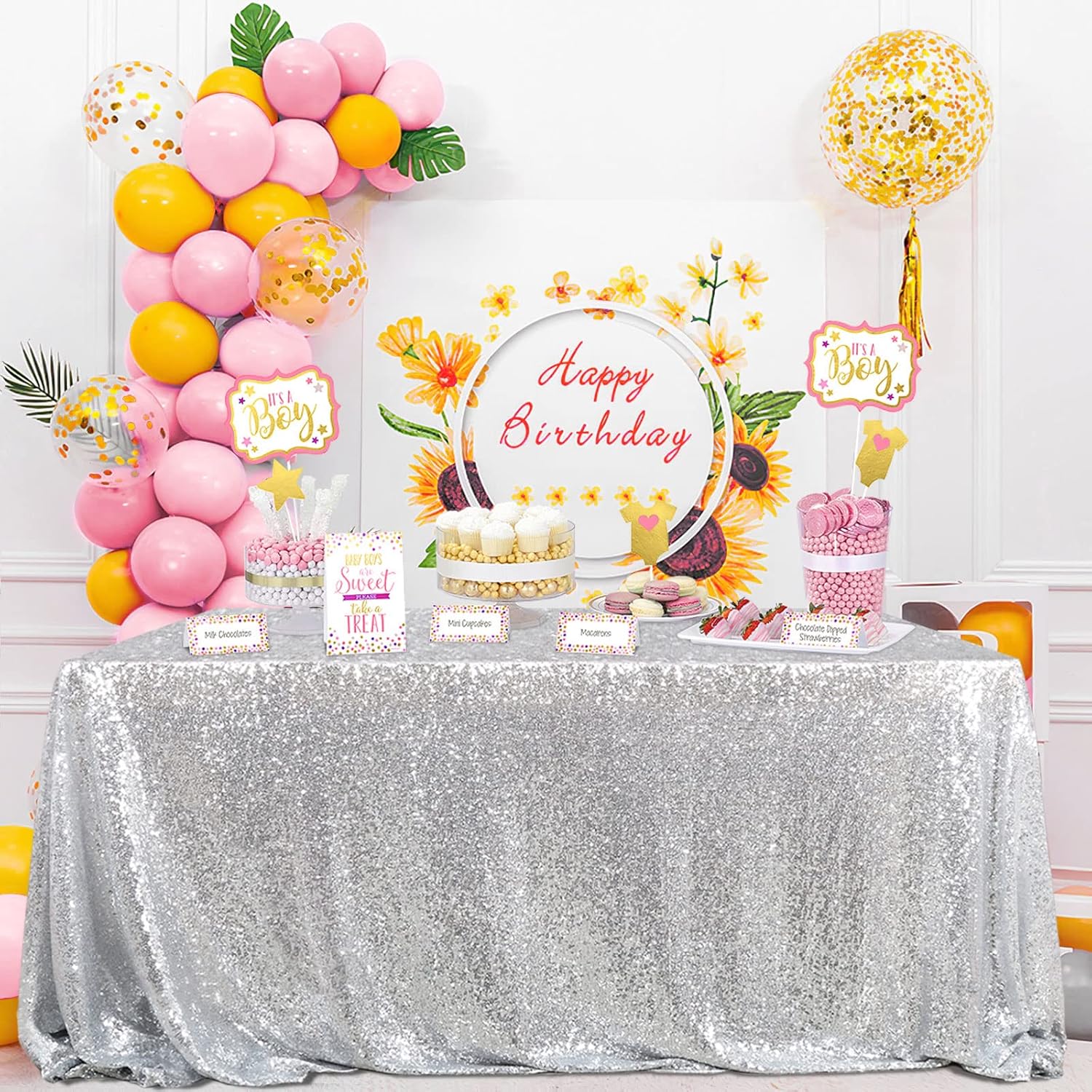- Silver Tablecloth Widely Used: This glitter silver tablecloth is perfect for Hollywood Party, Homecoming, Christmas, Birthday, Halloween, Theme Party, New Year Eve, Bridal Shower, Baby Showers, Graduations, Wedding, Cocktail etc.