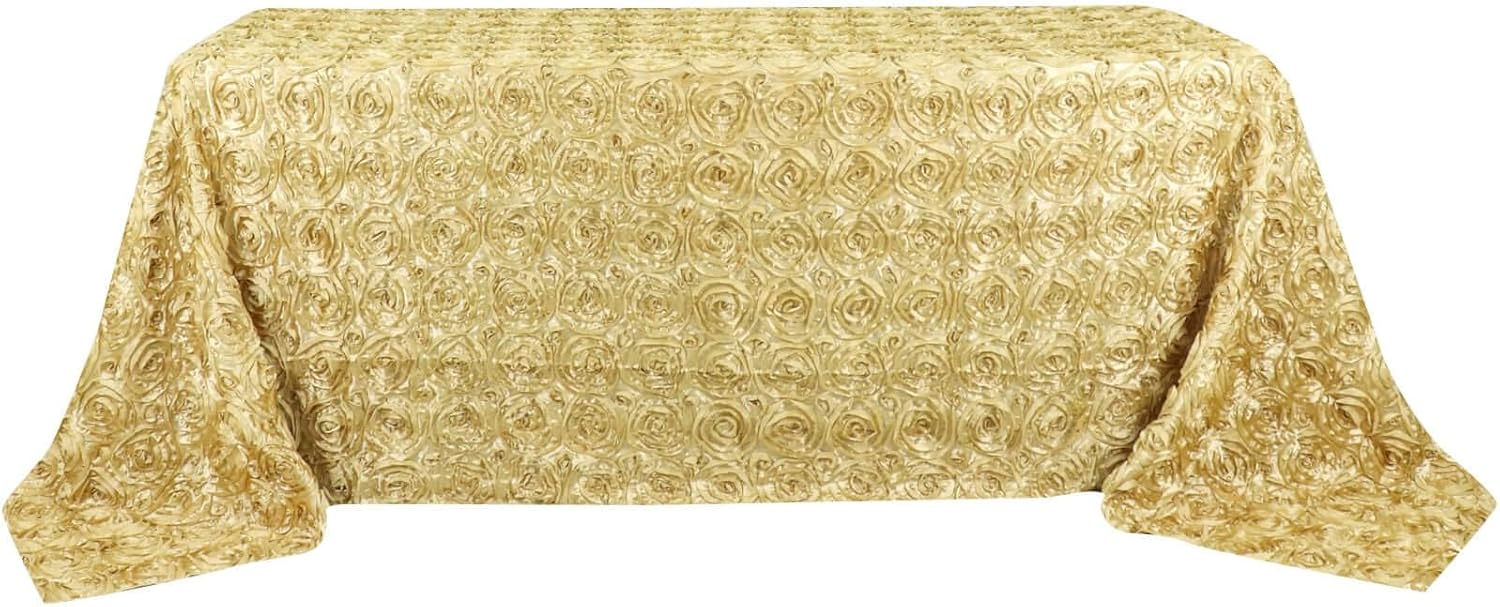 Efavormart 90"x132" Wholesale Rectangle Table Cover Champagne Grandiose Rosette 3D Satin Tablecloth for Wedding Party Event