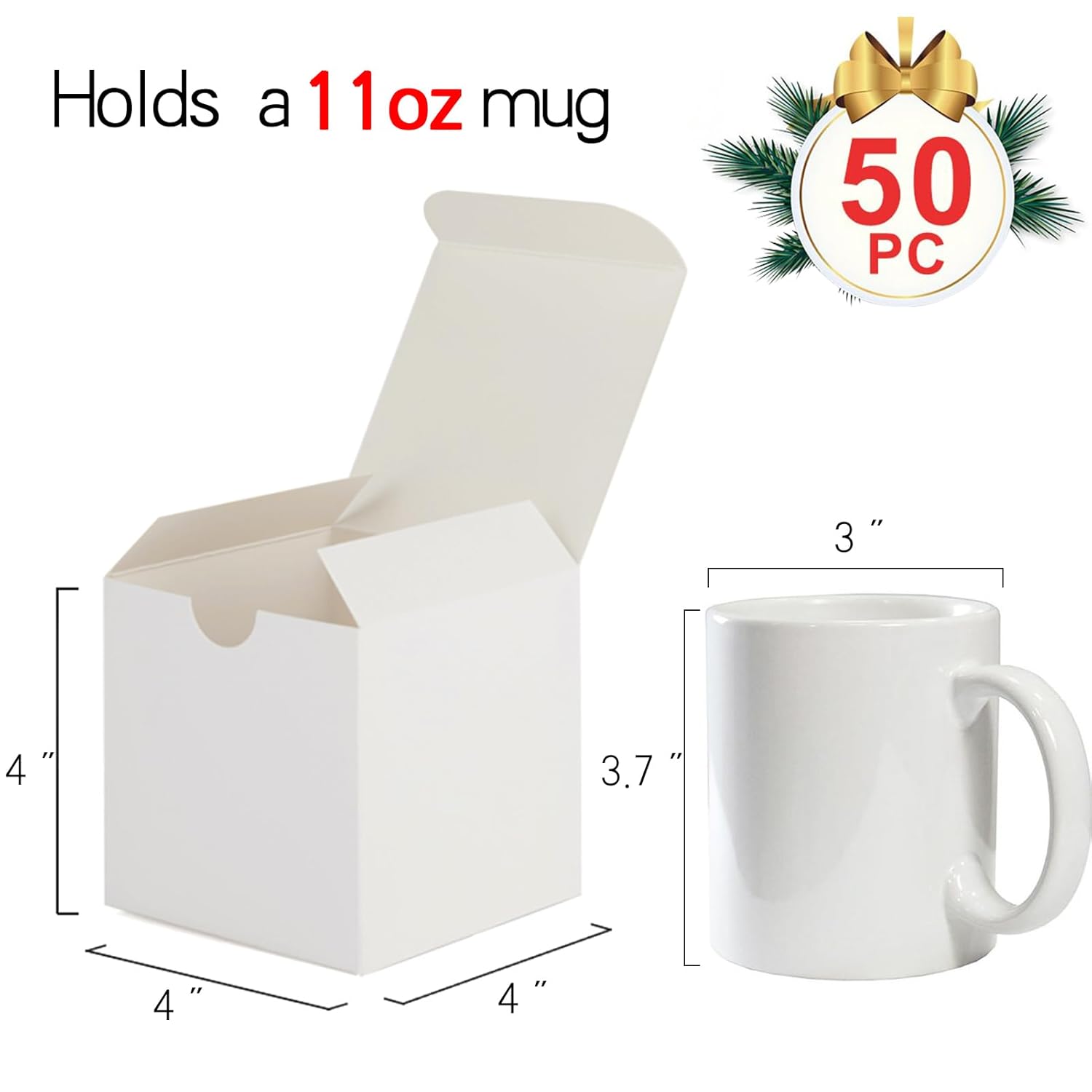 MESHA 4x4x4'' White Gift Boxes 50 PC Bulk Small Gift Box with Lids, Kraft Paper Boxes for Presents, White Bridesmaid Proposal Box for Packaging