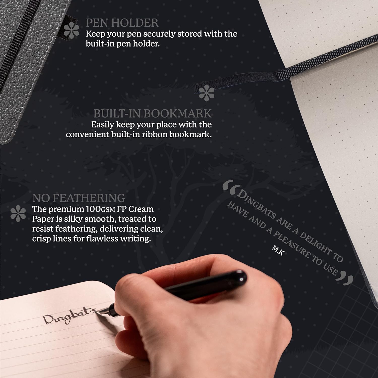 - SUSTAINABLY SOURCED, ENVIRONMENTALLY CONSCIOUS: Made from recyclable materials and FSC certified paper, our notebooks are Vegan Certified. Dingbats* Notebooks Ltd donates 2% of UK sales to WWF-UK, supporting environmental conservation.