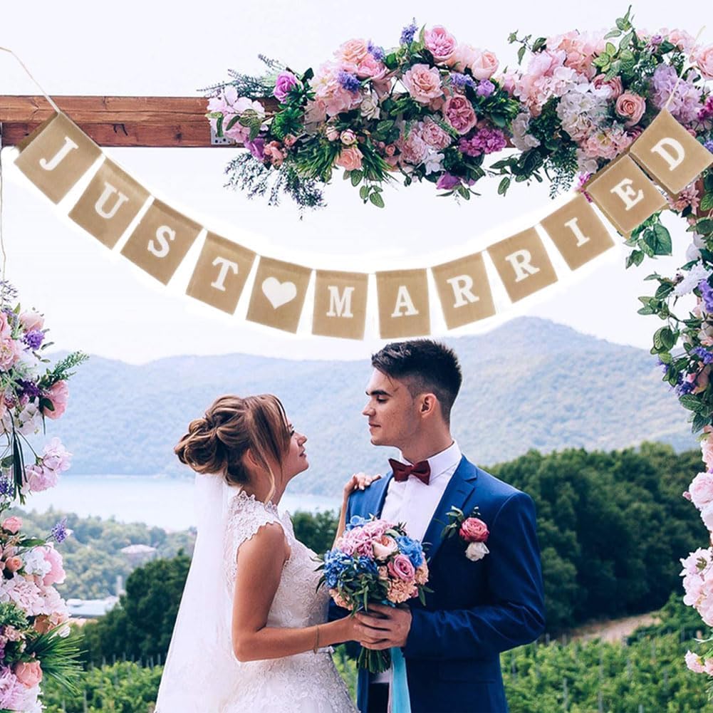- Rustic Wedding Decor: The burlap banner features a beautiful white "Just Married" text, creating a charming and elegant rustic wedding decor for your special day.