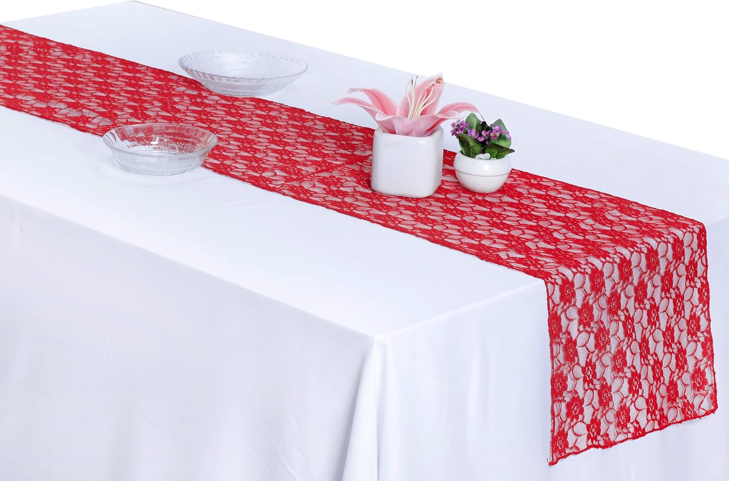 MDS Pack of 10 Wedding 12 x 108 inches Lace Table Runner for Wedding, Decorations for Birthday Parties, Banquets, Graduations, Engagements, and Runners fit Rectangle, Round Table- Red