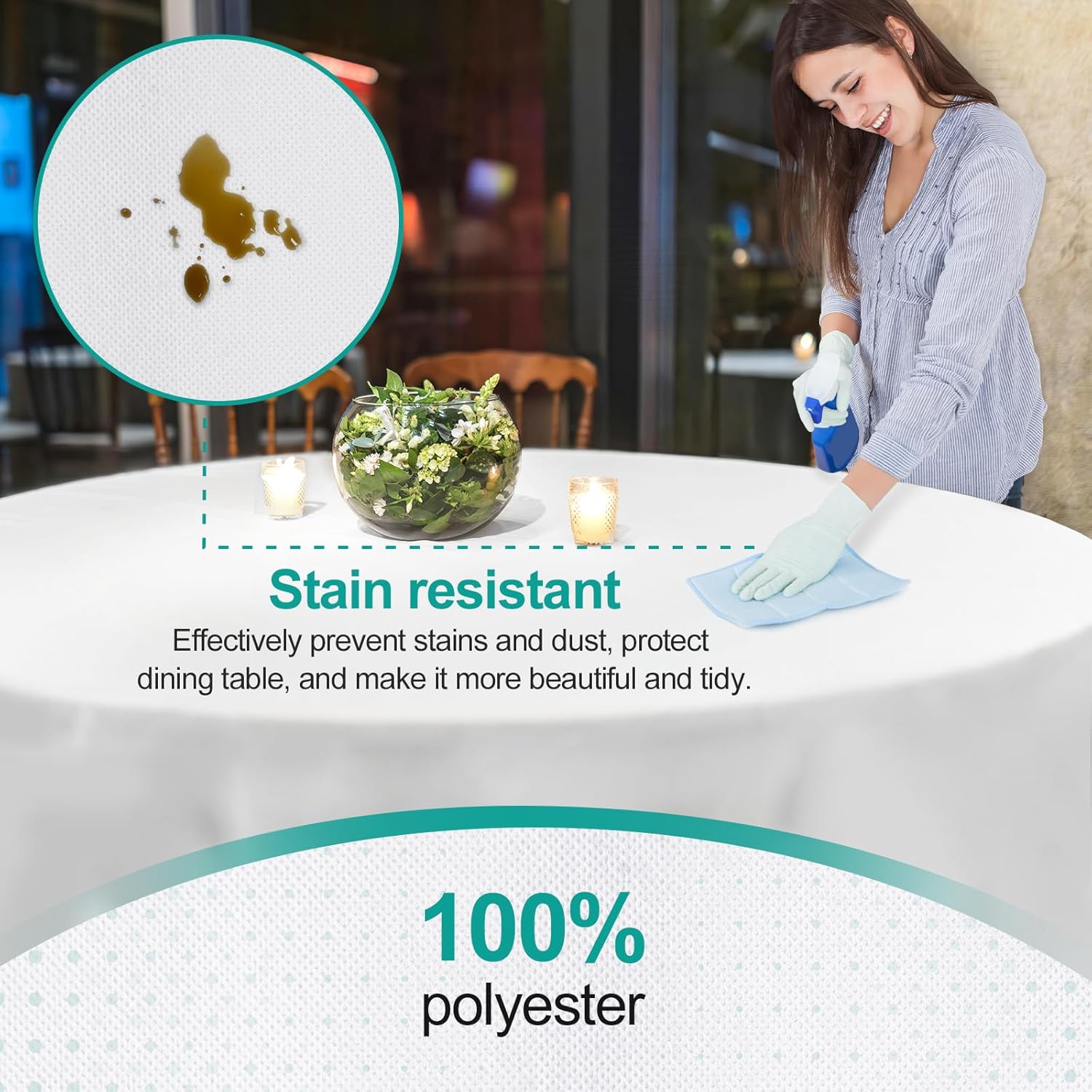 - 【Easy to Care】 Round tablecloths can be machine washed and dried at low temperature and low speed. High quality materials ensure that our tablecloths are durable and reusable