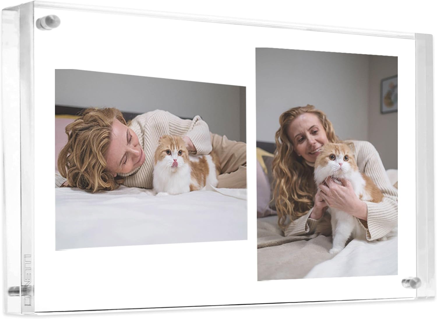 - MULTI FUNCTIONAL EXHIBIT - A Canetti acrylic frame can display two photos back to back horizontally or vertically. Display your favorite photos in an elegant and modern way with flexibility.