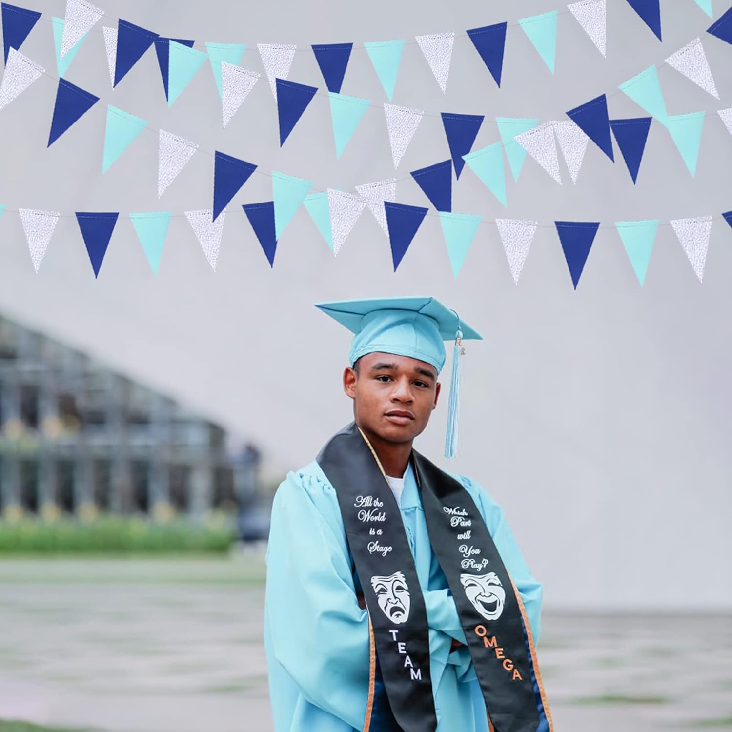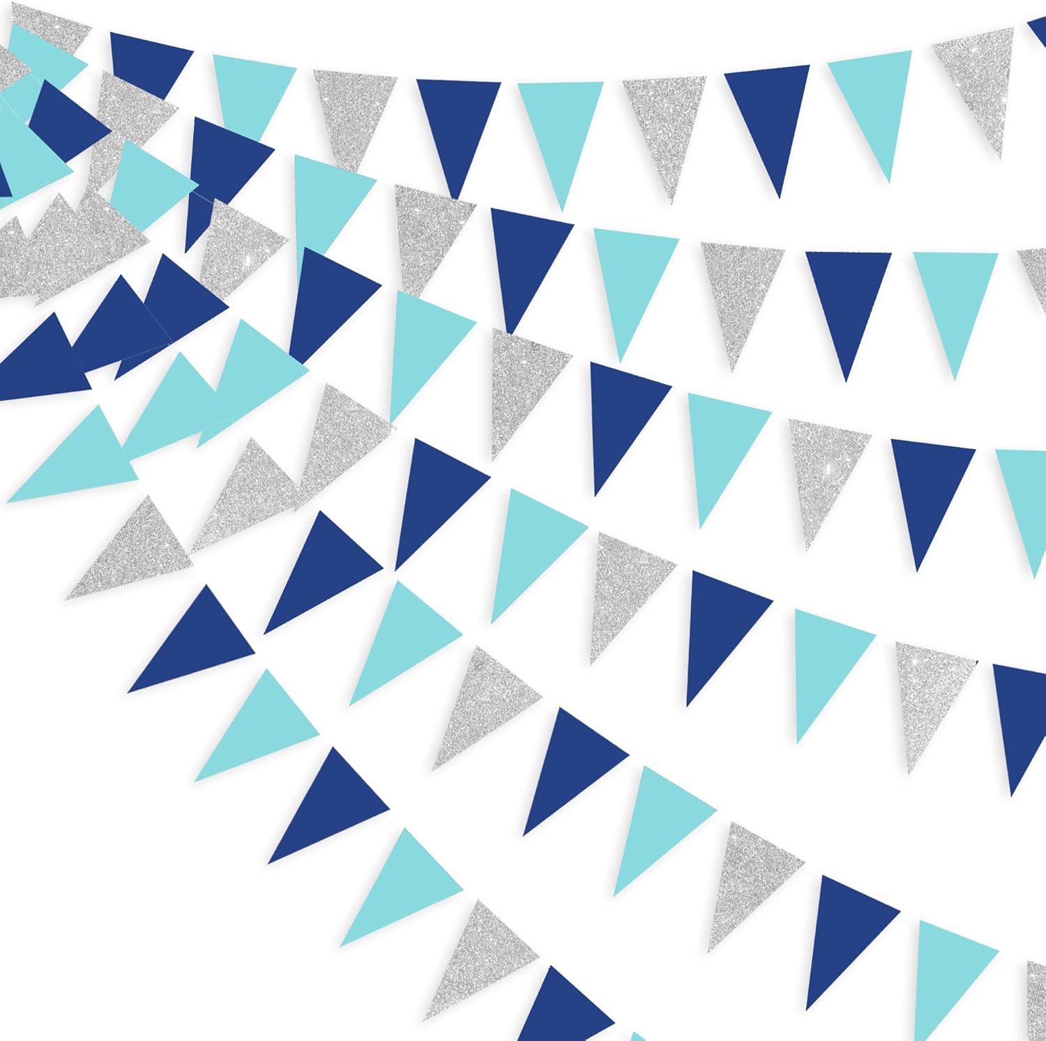 - 🤍SPECIAL DESIGN -Our silver blue triangle flag garland banners are made of two environmental materials paper alternately.Double sided glitter paper and cardstock with neat cut,strong,won't come unstitched or broken easily.durable and reusable.