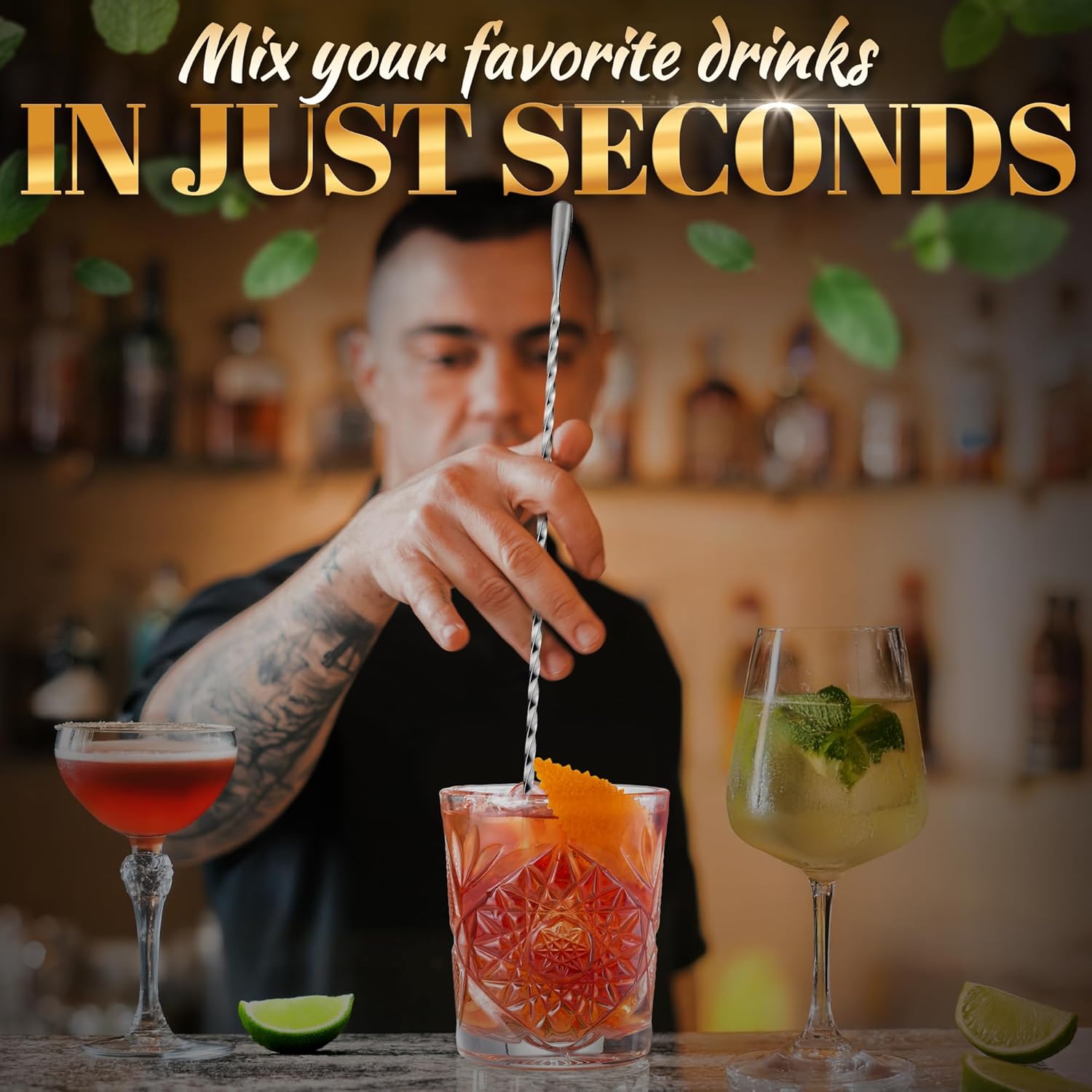 - ⭐Coctail Spoons Kit: Our set features 4 x 12-inch drink stirrers cocktail spoon long handle, perfect for stirring up cocktails, iced tea, coffee drinks & smoothies. A reliable addition to any kitchen