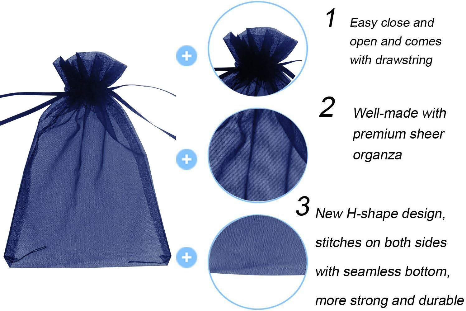 Wudygirl 100PCS Organza Bags 5X7 inch Navy Blue with Drawstring Jewelry Pouch Favor Wedding Favor Bags(Navy Blue 5x7'')