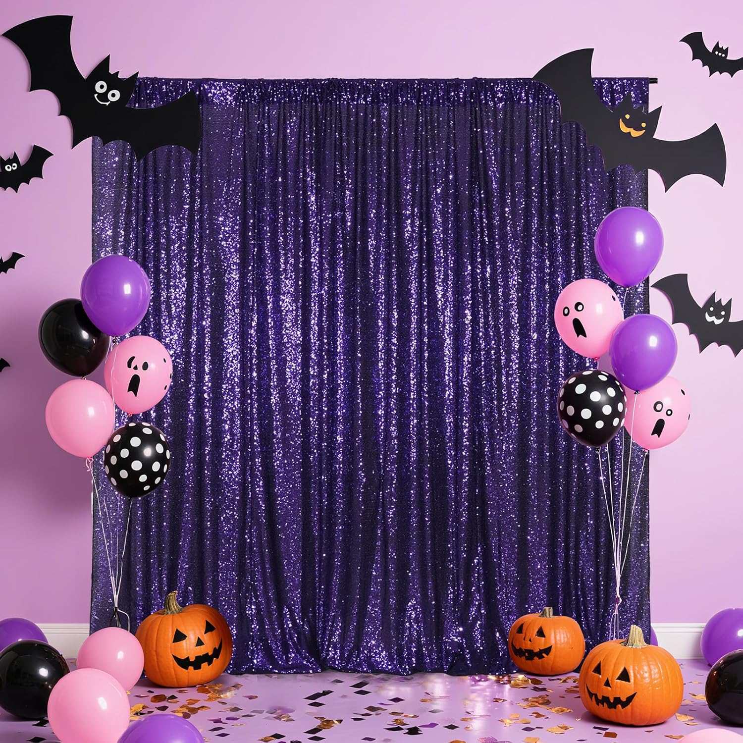 Poise3EHome Purple Sequin Backdrop, 10Ft x 10Ft Glitter Photography Background Curtains for Halloween Party Wedding Birthday Christmas Thanksgiving Decoration