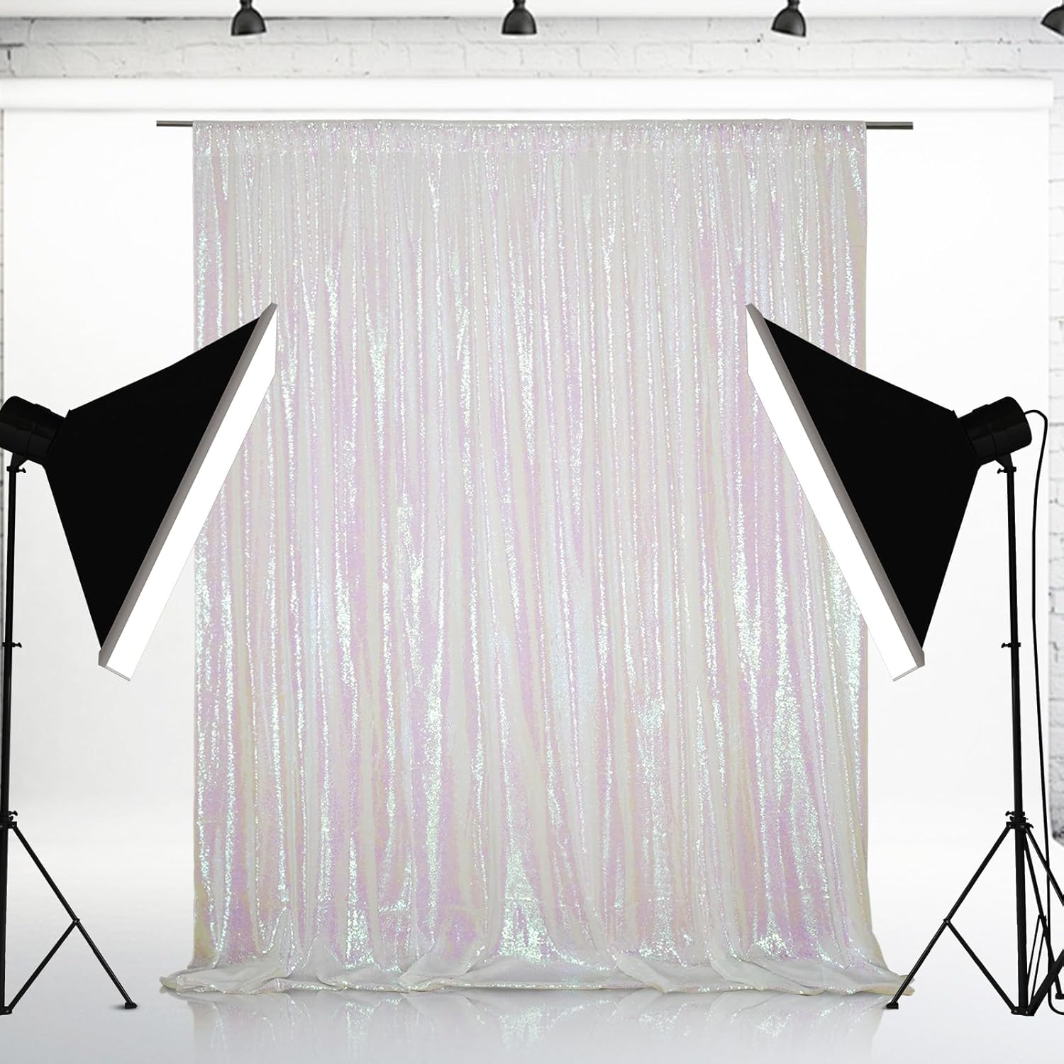 Eternal Beauty White Iridescent Sequin Backdrop, 6x6 Ft Glitter Background Curtains for Shimmer Photography Party Wedding Birthday Back Drop Decor