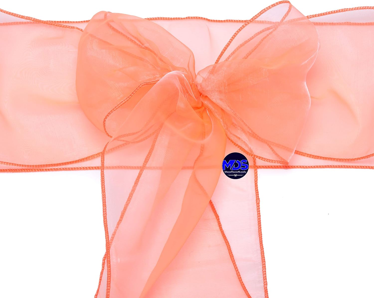 MDS Pack of 10 PCS Organza Chair Sashes Wider Dining Chair Bows Ribbon Tie Back for Wedding Party Birthday Bridal Shower Reception Event Banquet Home Chair Cover Decoration - Light Orange