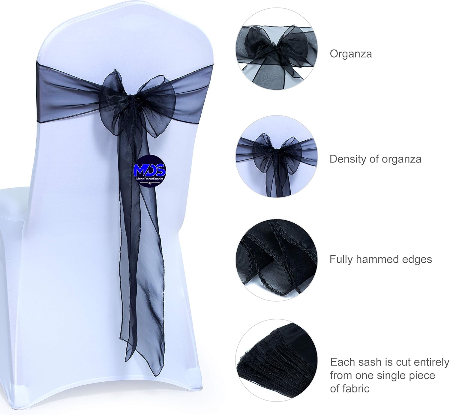 MDS Pack of 75 PCS Organza Chair Sashes Wider Dining Chair Bows Ribbon Tie Back for Wedding Party Birthday Bridal Shower Reception Event Banquet Home Chair Cover Decoration - Black