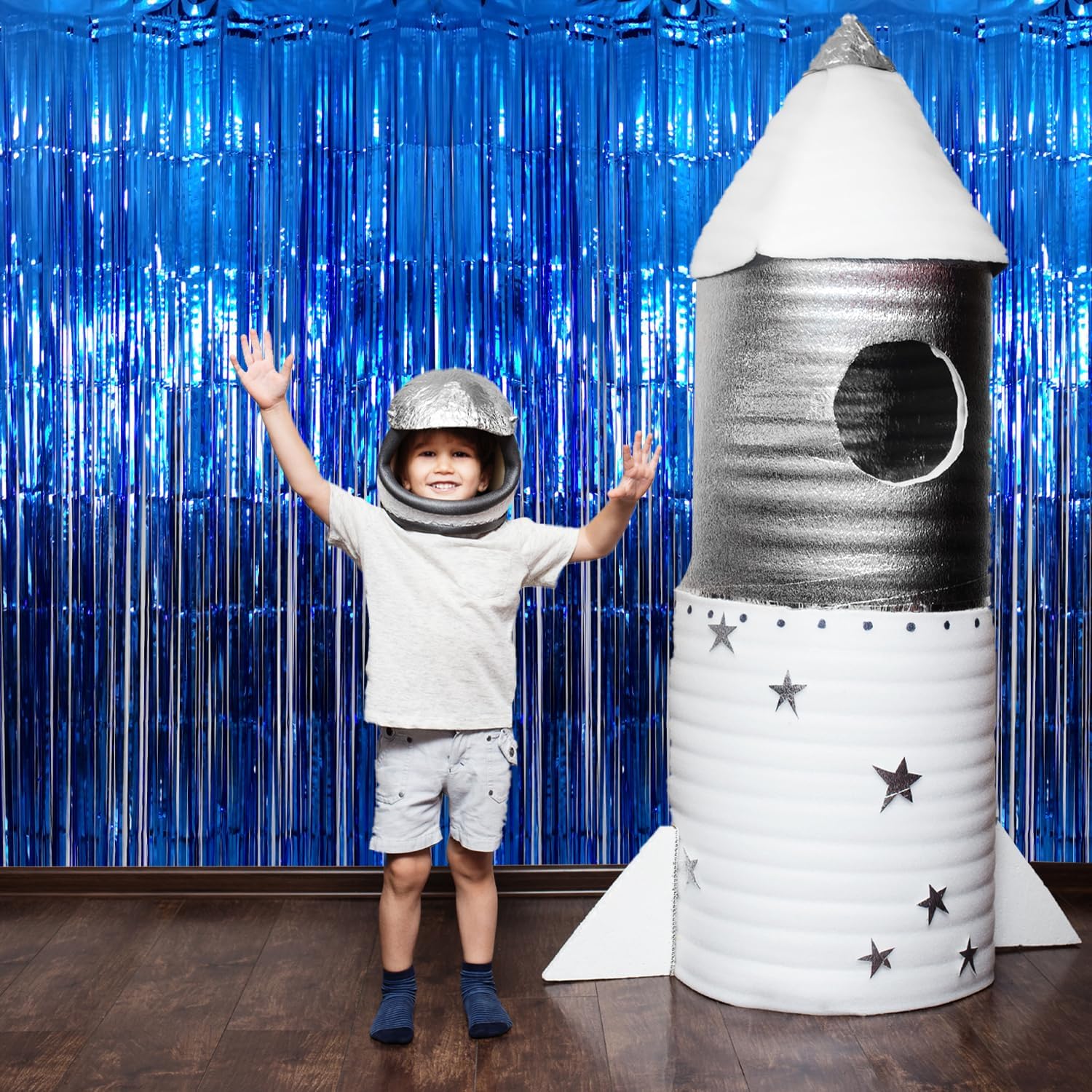- Package Includes:5 pack navy blue foil fringe curtain,3.2 ft x9.8 ft each,suitable for hanging on a door or coverage a wall fully