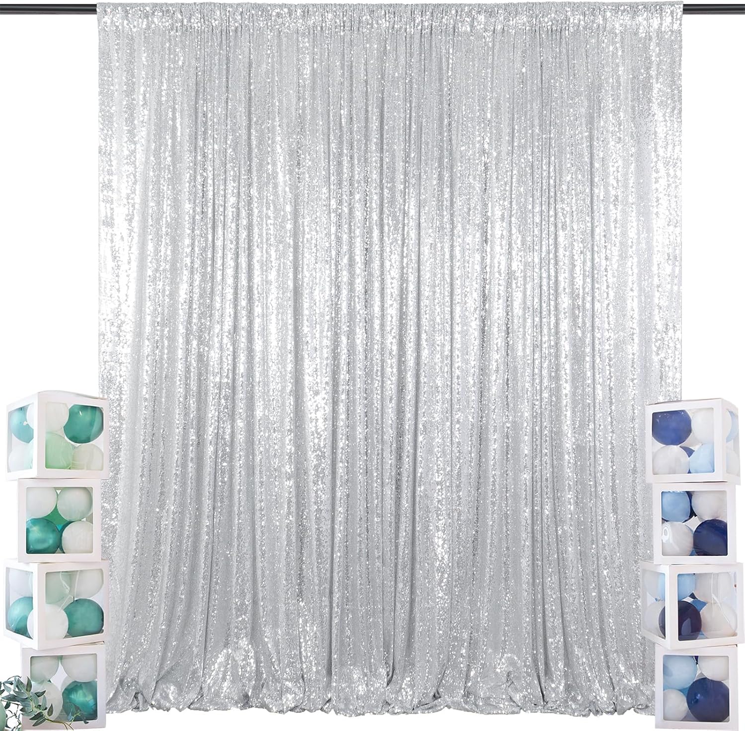 ShinyBeauty Sequin Curtain-Backdrop-5FTx10FT-Silver-Sequin Fabric Photo Booth Backdrop