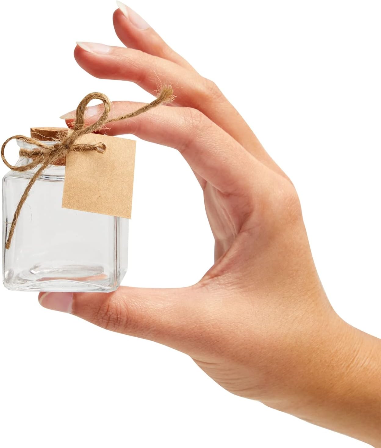 - Compact Design Efficiency: With a 50ml capacity, these square glass jars with cork measure 2 x 1.5 x 1.5 inches, making them perfect for space-saving storage. Their compact size and elegant design add charm and sophistication to any room
