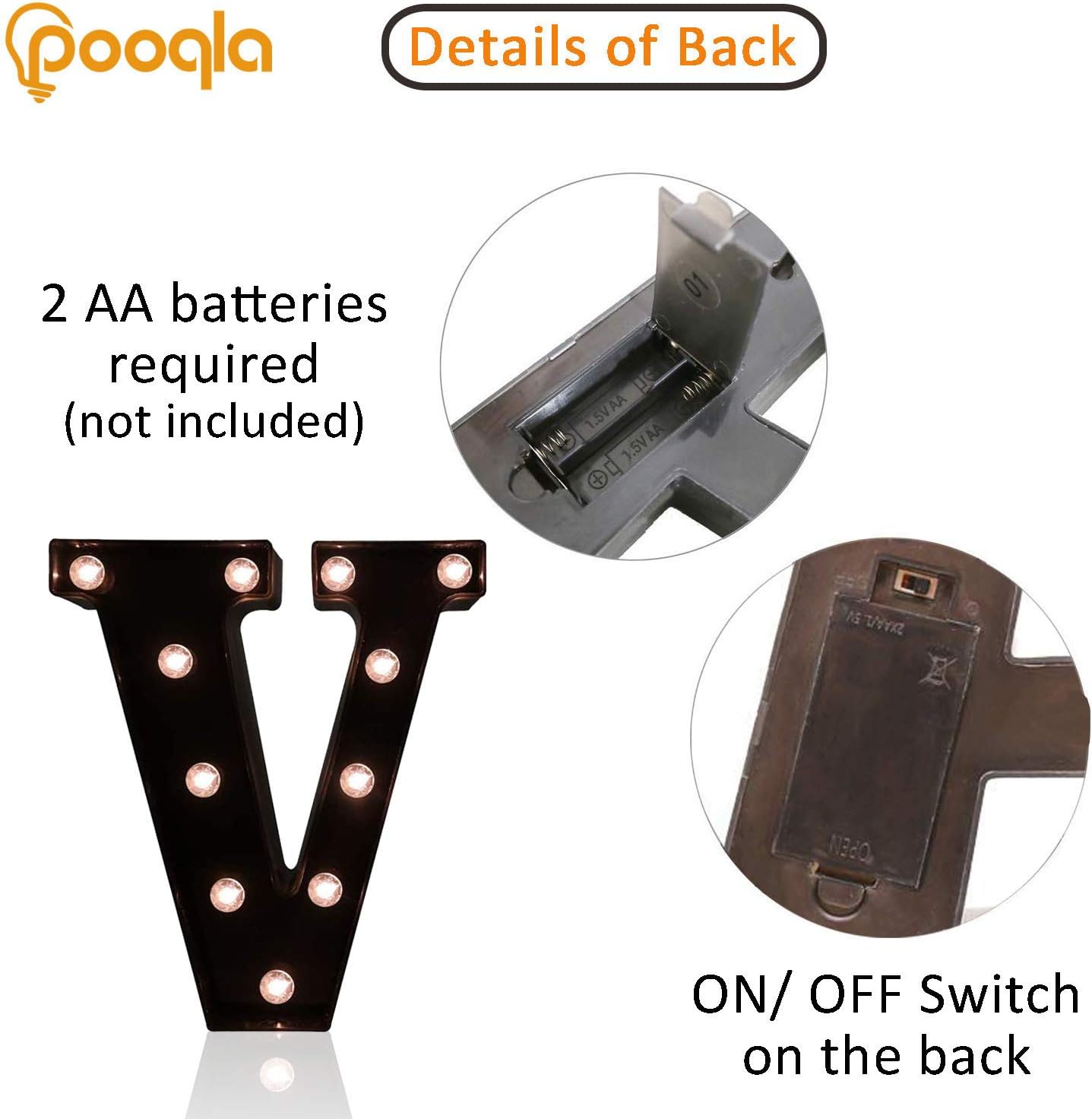 Decorative LED Illuminated Letter Marquee Sign - Alphabet Marquee Letters with Lights For Wedding Birthday Party Christmas Night Light Lamp Home Bar Decoration V, Black
