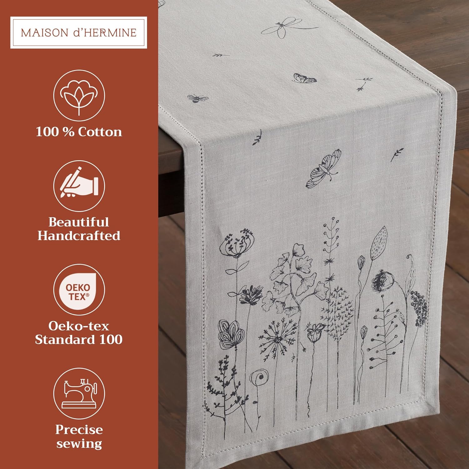Maison d' Hermine Table Runner 100% Cotton Single Layer Table Runners 72 inches Long Decorative for Home Kitchen Dining Party Baby Shower Wedding Bridal Shower Spring Summer (Flore, 14.50" x 72")