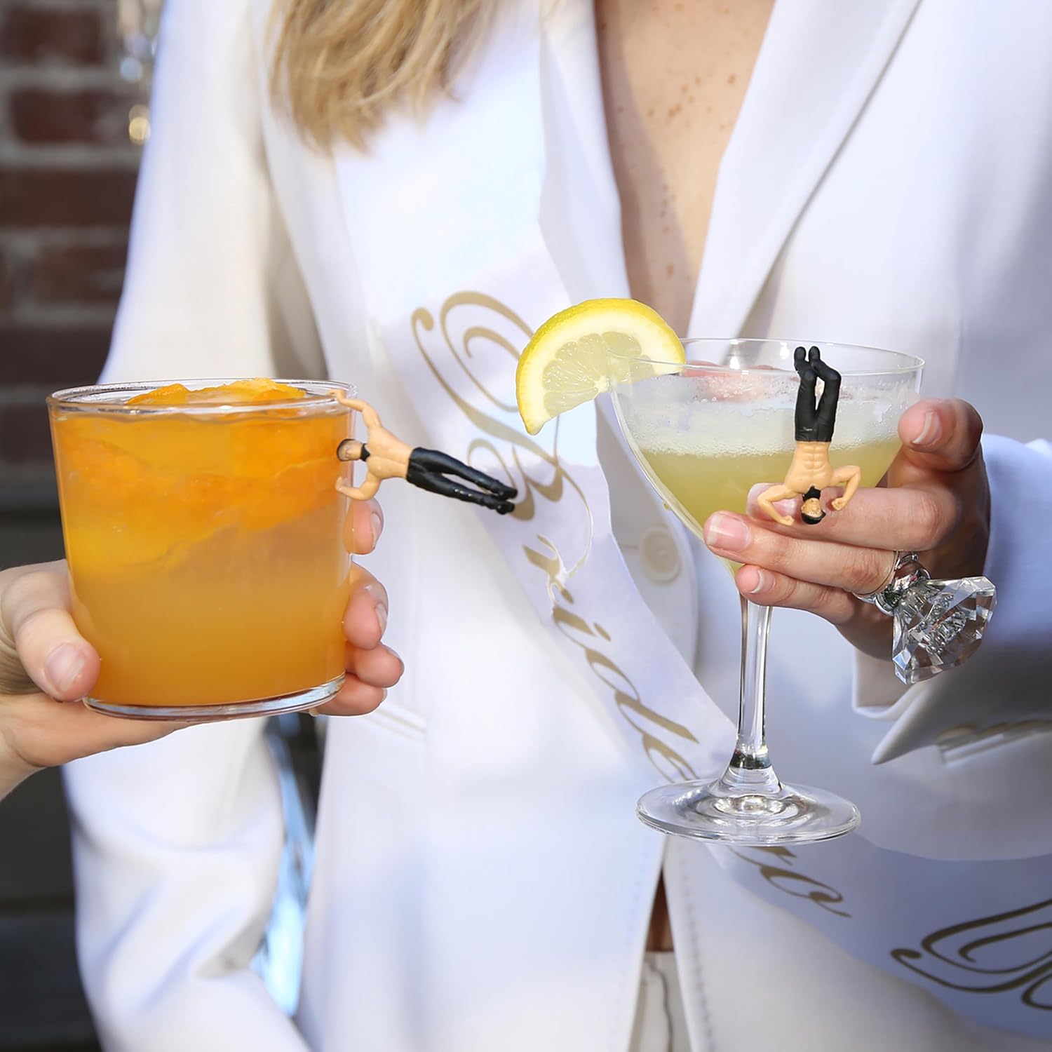 - Perfectly Sized: Each sculpted hunk effortlessly grips the rim of your glass, ensuring a snug fit. Whether it's a wine glass, cocktail glass, or a beer mug, these drinking buddies drink markers hang on every with every word and sip.