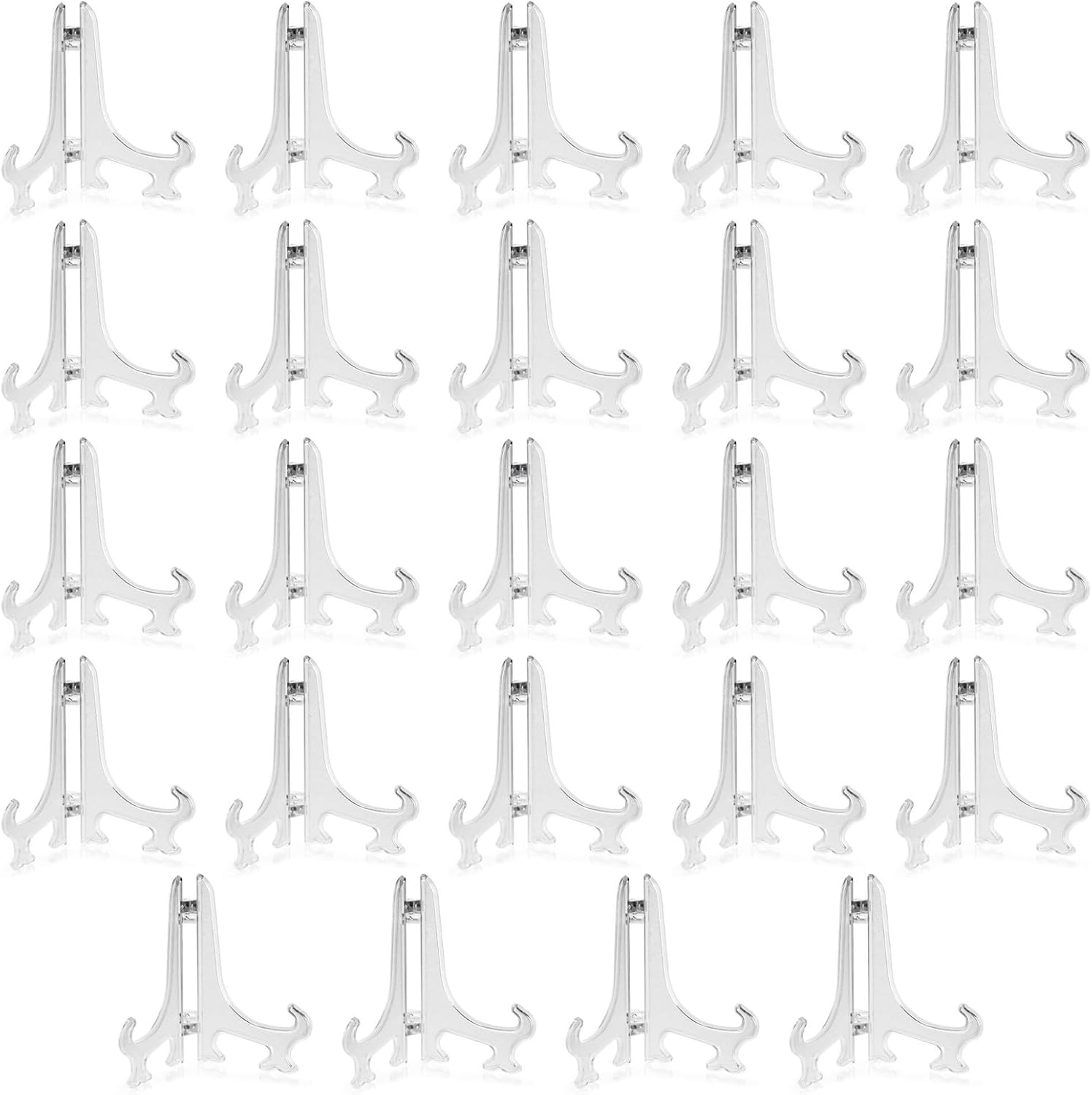 - Sophisticated Display Solution: Juvale's Clear Mini Easels elegantly showcase items with their minimalist design. These 4-inch clear plastic easels provide a stable platform, making them ideal as a picture stand or a decorative plate holder