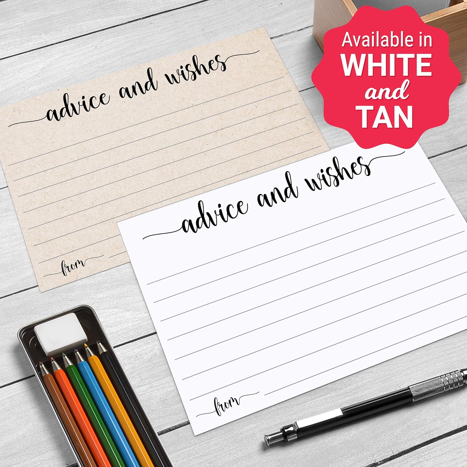 321Done Advice and Wishes Cards (50 Cards) 4" x 6" White Blank Well Wishes for Wedding, Bridal, Mr and Mrs, Retirement, Baby Shower - Words of Wisdom - Made in USA