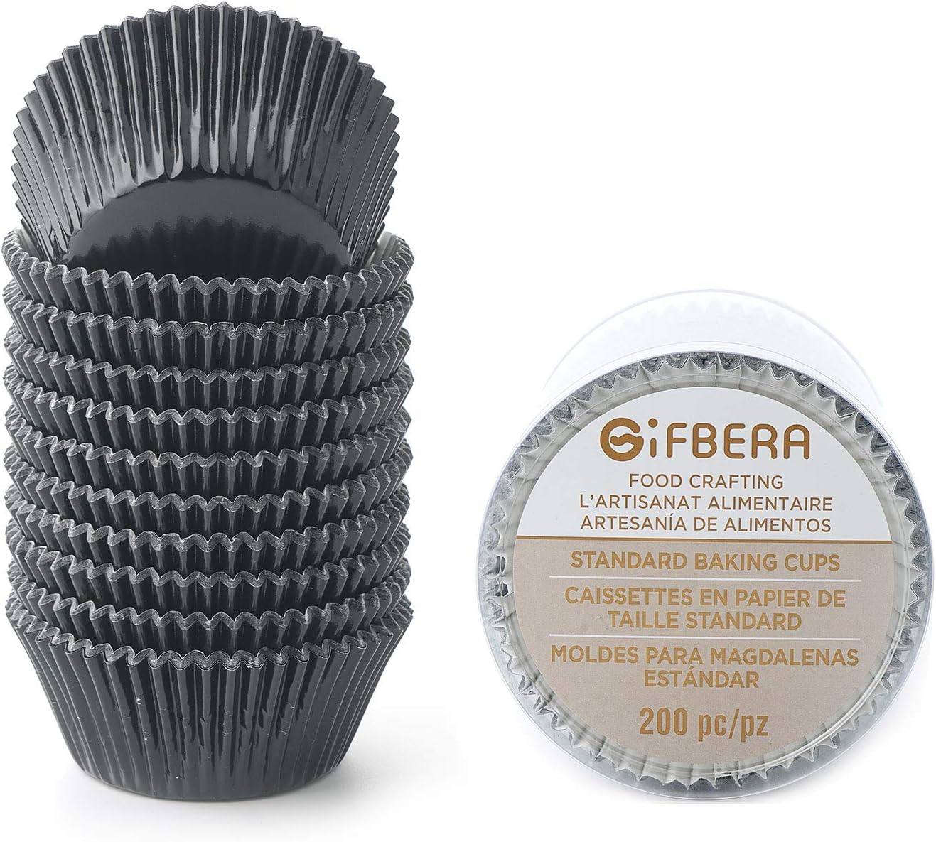 Gifbera Standard Black Foil Cupcake Liners Muffin Wrappers, 200-Count