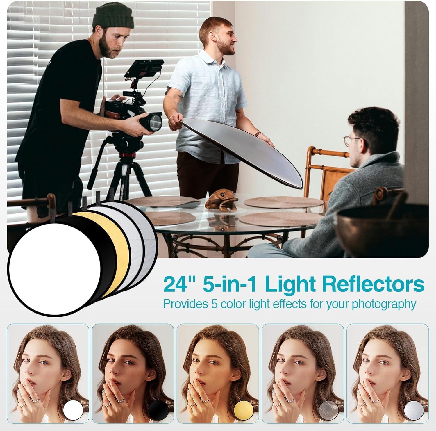 - Studio Light and Background Support System List, [2] 24"x24" Softbox, [1] 8.5 x 10ft Backdrop Stand Support System,[3] 6x9 ft Muslin Backdrop(Black, White and Green), [6]Backdrop Spring Clamps, [4] Backdrop Clip Holder, [4] 50W LED Bulb,[2]Lamp Holder, [2] 33inch Translucent Umbrella, [4] 7ft Light Stand, [1] 24" 5 in 1 Reflector. [1] Carrying Bag