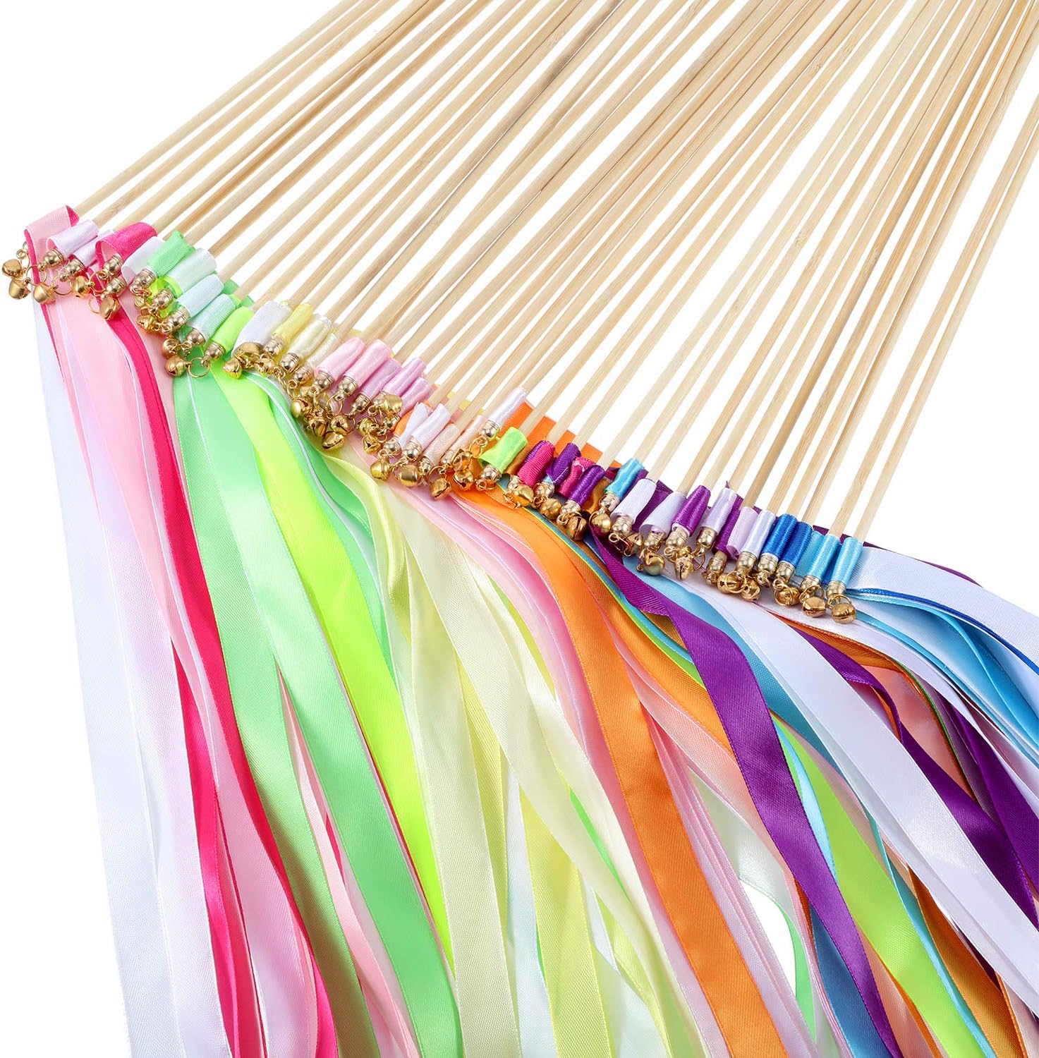 - Characteristic: the tops of ribbon sticks are equipped with small bells, waving them up will give you a melodious sound, adding festive atmosphere to your party and events, they will be a great hit for most celebration