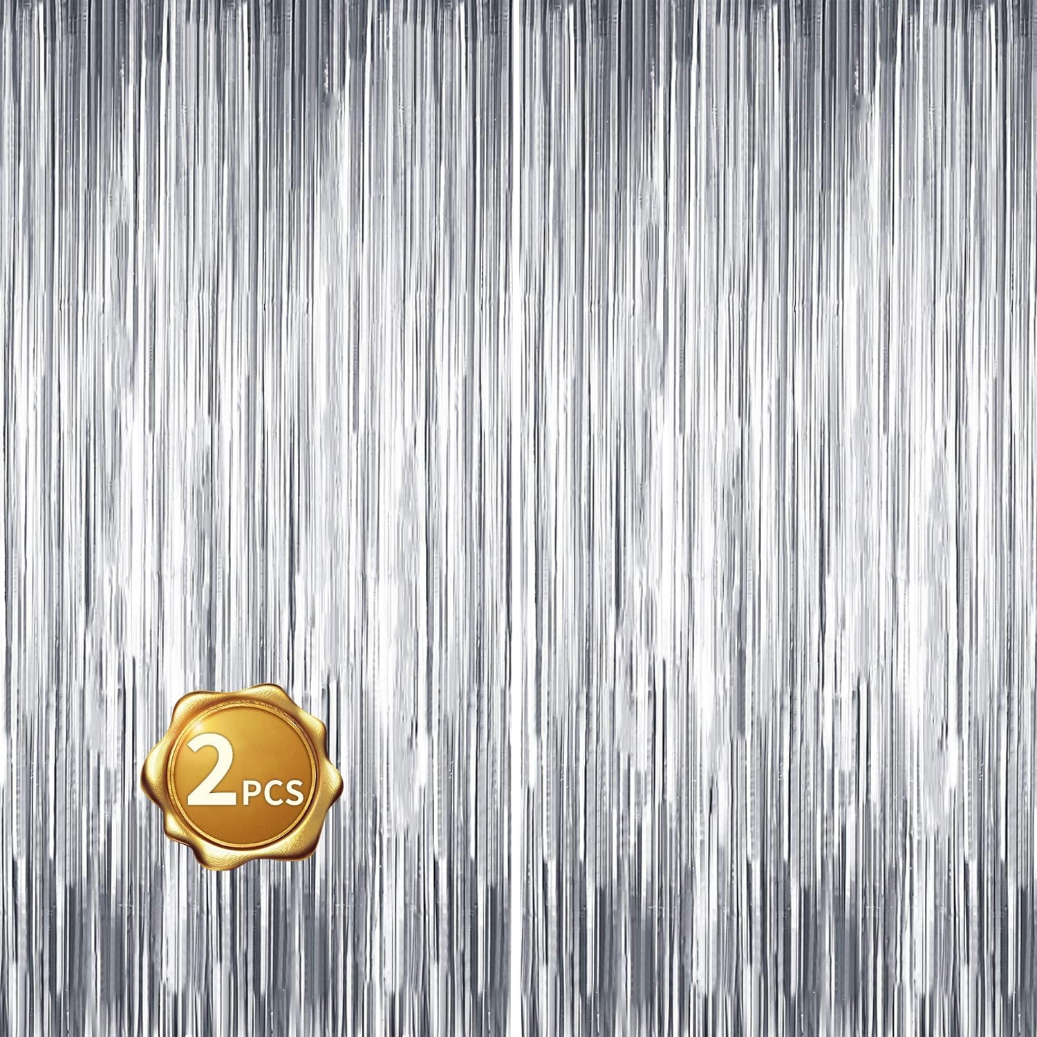 BEISHIDA 2 Pcs Silver Door Streamers Tinsel Curtain Party Streamers Backdrop Fringe Foil Wall Background for Birthday Halloween Christmas Wedding Party Decoration(3.28 ft x 6.56 ft)
