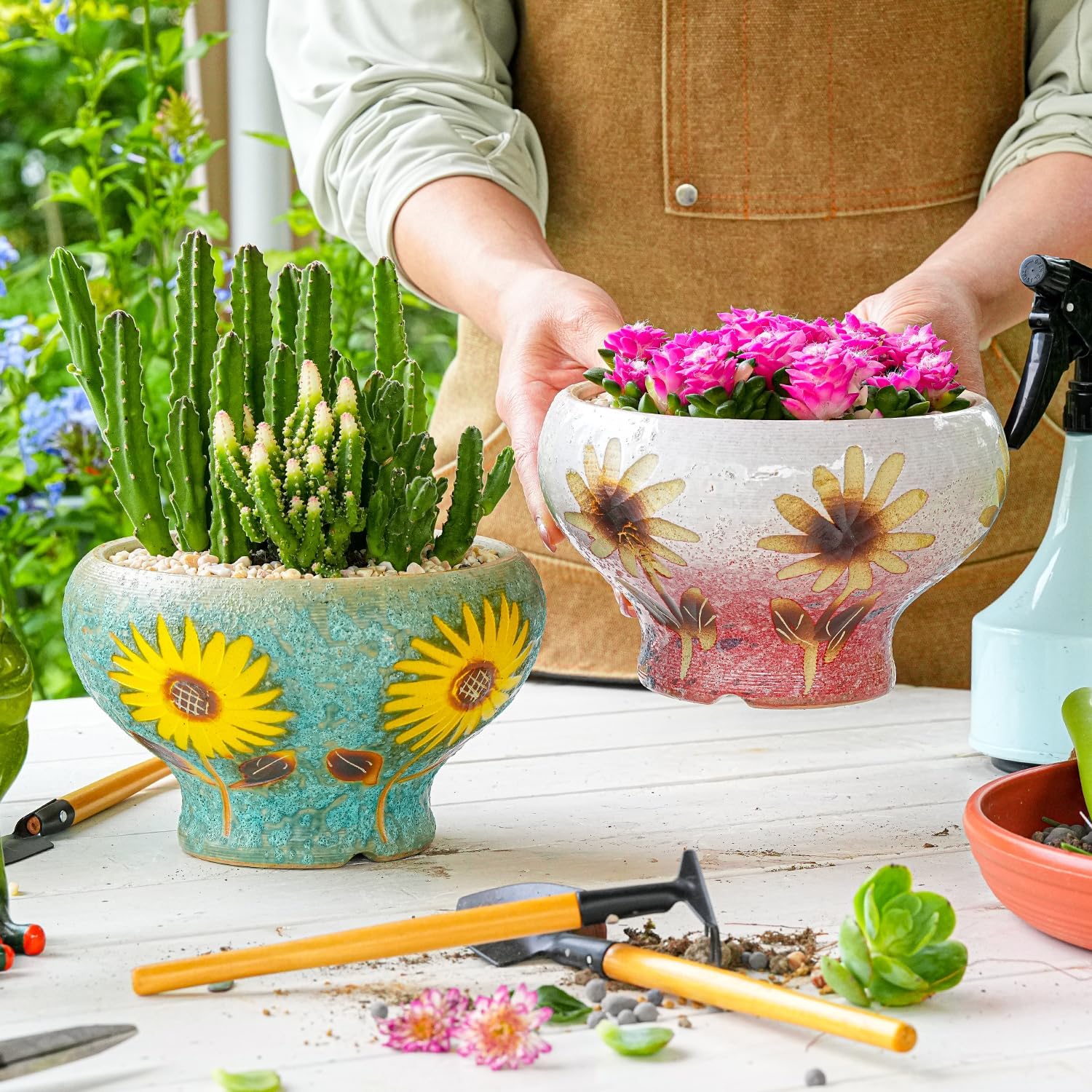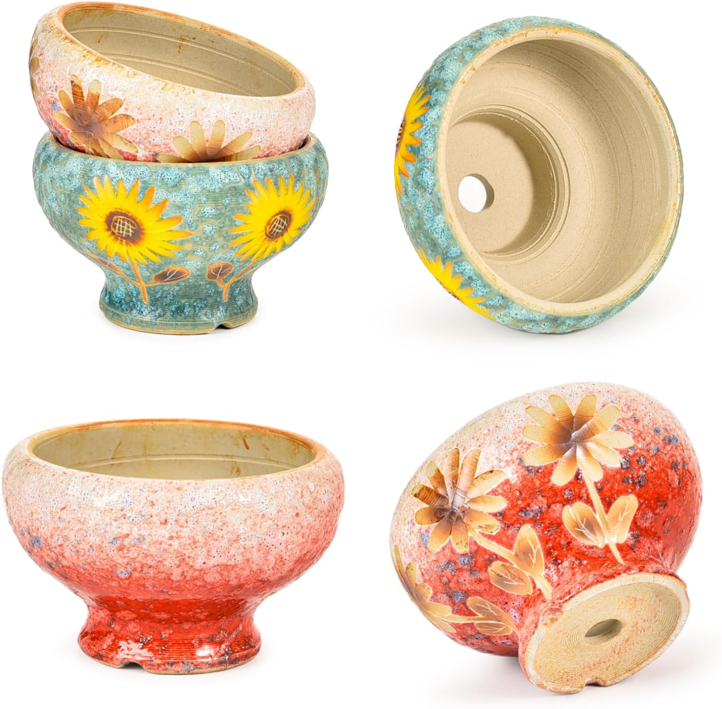 - Handicrafts: This set of beautifully design ceramic succulent pots are handcrafted, beautiful vibrant colors with hand painted flower. The subtle variations in the glaze add character, great artistry and attractive.