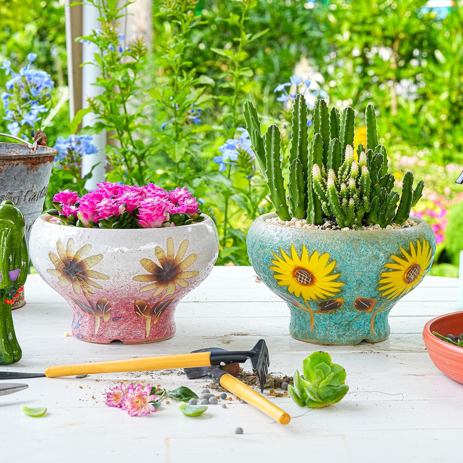 Sungmor Small Succulent Planters Set of 2, Beautiful Hand Crafted Ceramic Plant Pots Cute Cactus Pot, 6.5 Inch Flower Pots for Indoor Plants with Drainage, Desktop Windowsill Home Office Decor Pots