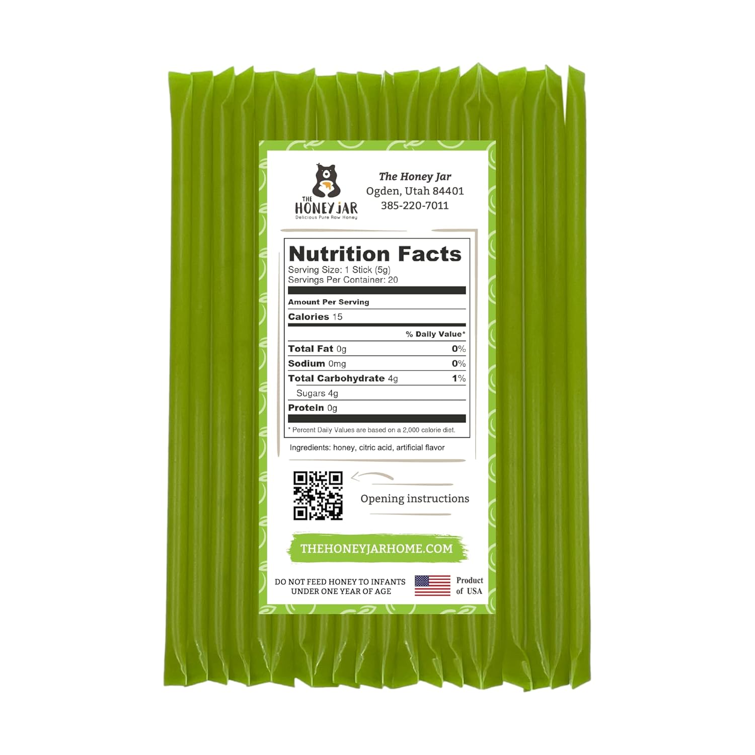 The Honey Jar Green Apple Flavored Honey Sticks - Pure Honey Straws For Tea, Coffee, or a Healthy Treat - One Teaspoon of Flavored Honey Per Stick - Made In The USA with Real Honey - (20 Count)