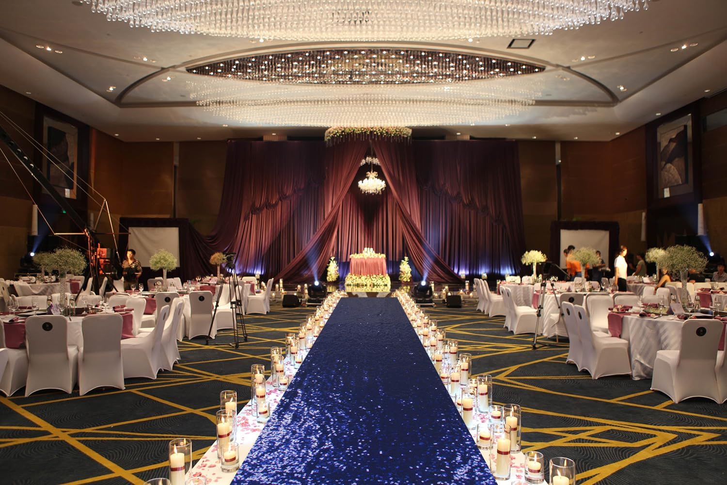 - √ Sequin Aisle Runner: 1PC 2FTx15FT Long Navy Blue Sequin Aisle Outside Wedding Floor Runner