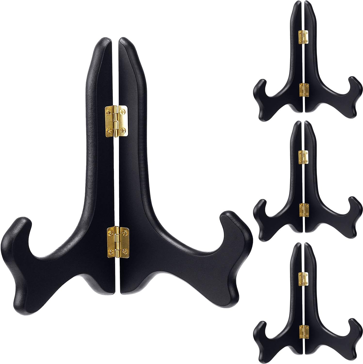 - Solid material: the wooden display easel is made of excellent crafted wood, painted black with gold latch; Solid construction, stable and durable; Contoured edges and hinges to fold flat for easy to store