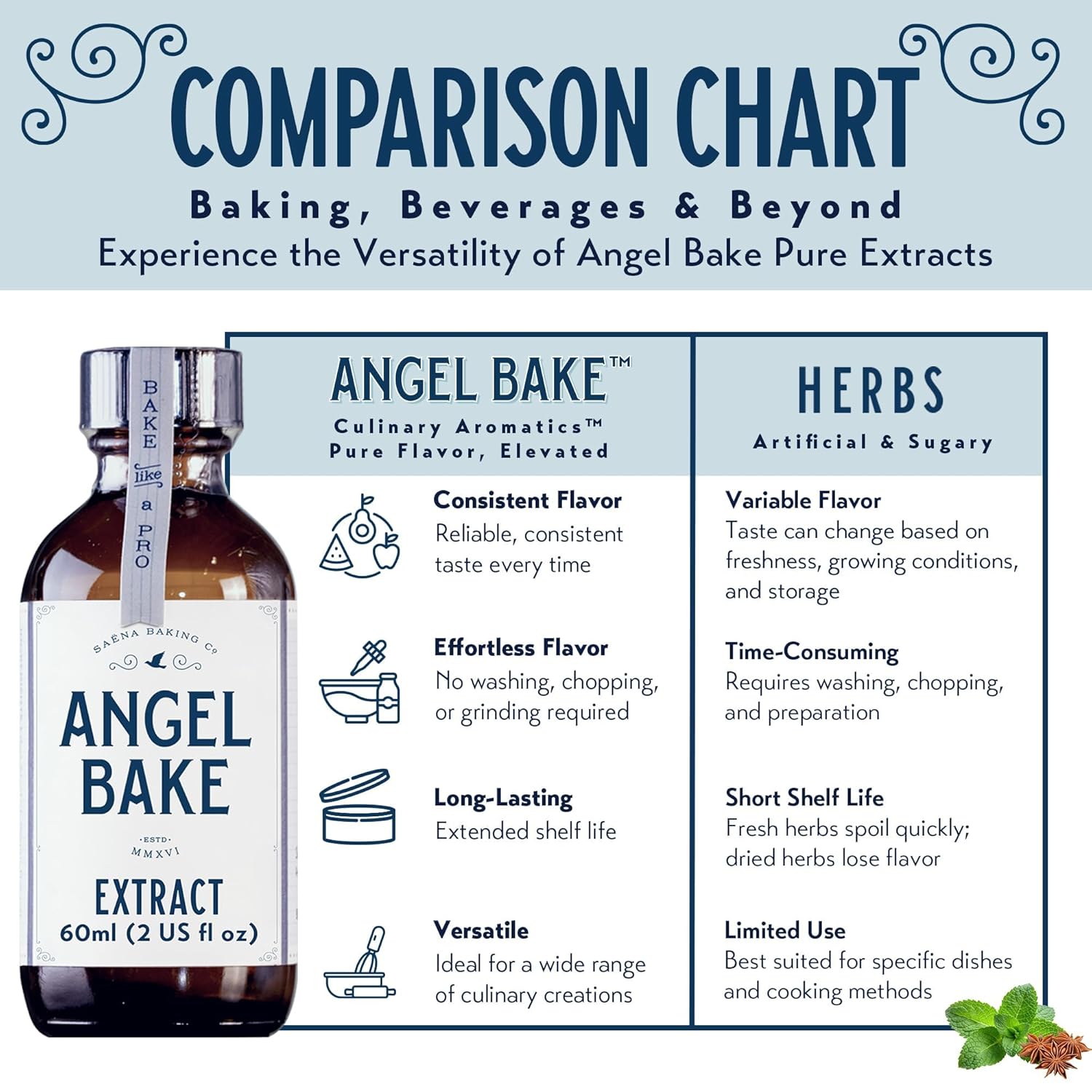 - VERSATILE BAKING FLAVORING EXTRACTS: Elevate your desserts like cakes, cupcakes, cookies, icing, and buttercream with vibrant extract flavors. Create flavored syrups by using our baking extracts by 1/4-1/2 teaspoon to a syrup for a gourmet touch.