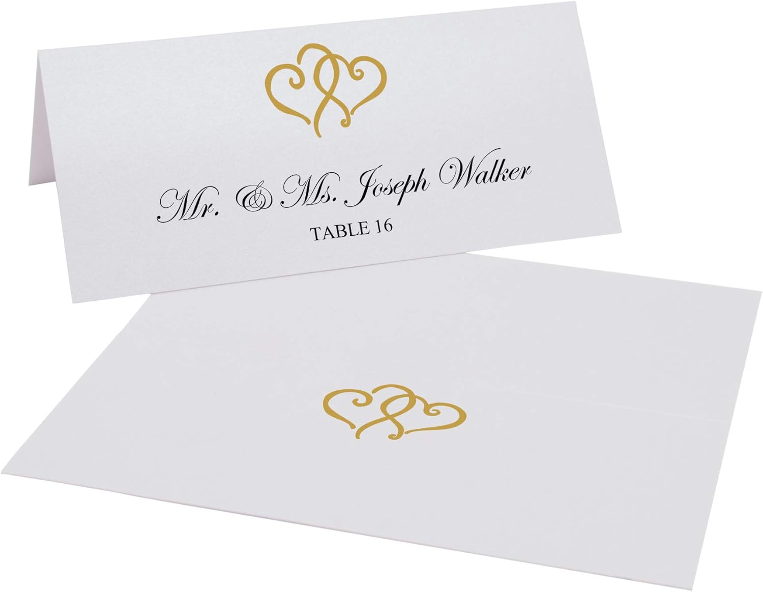Linked Hearts Place Cards, Gold (Choose Color), Set of 60, Pre-cut and Scored - Wedding, Party, Dinner, and Special Events - Made in the USA