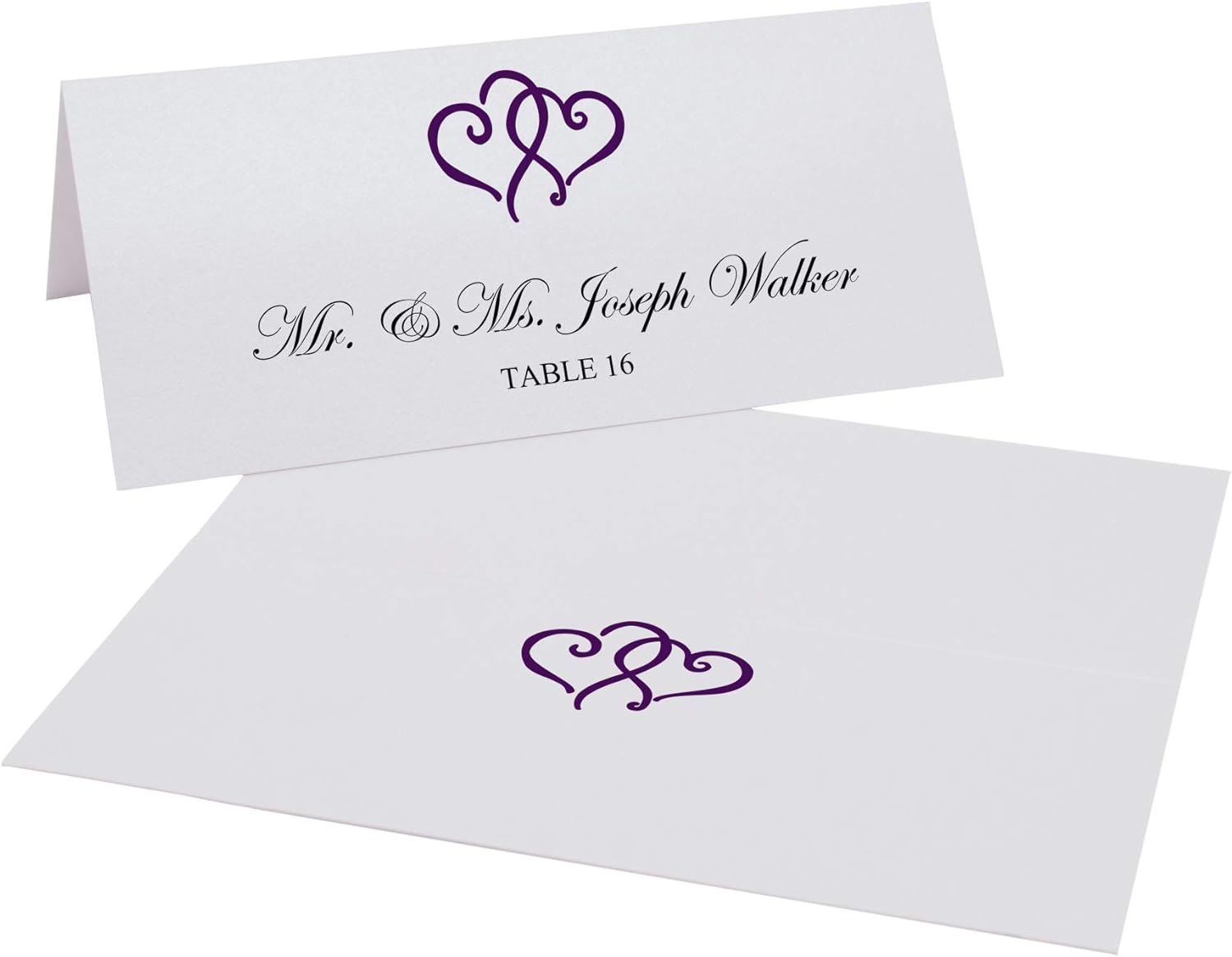 Linked Hearts Place Cards, Eggplant (Choose Color), Set of 60, Pre-cut and Scored - Wedding, Party, Dinner, and Special Events - Made in the USA