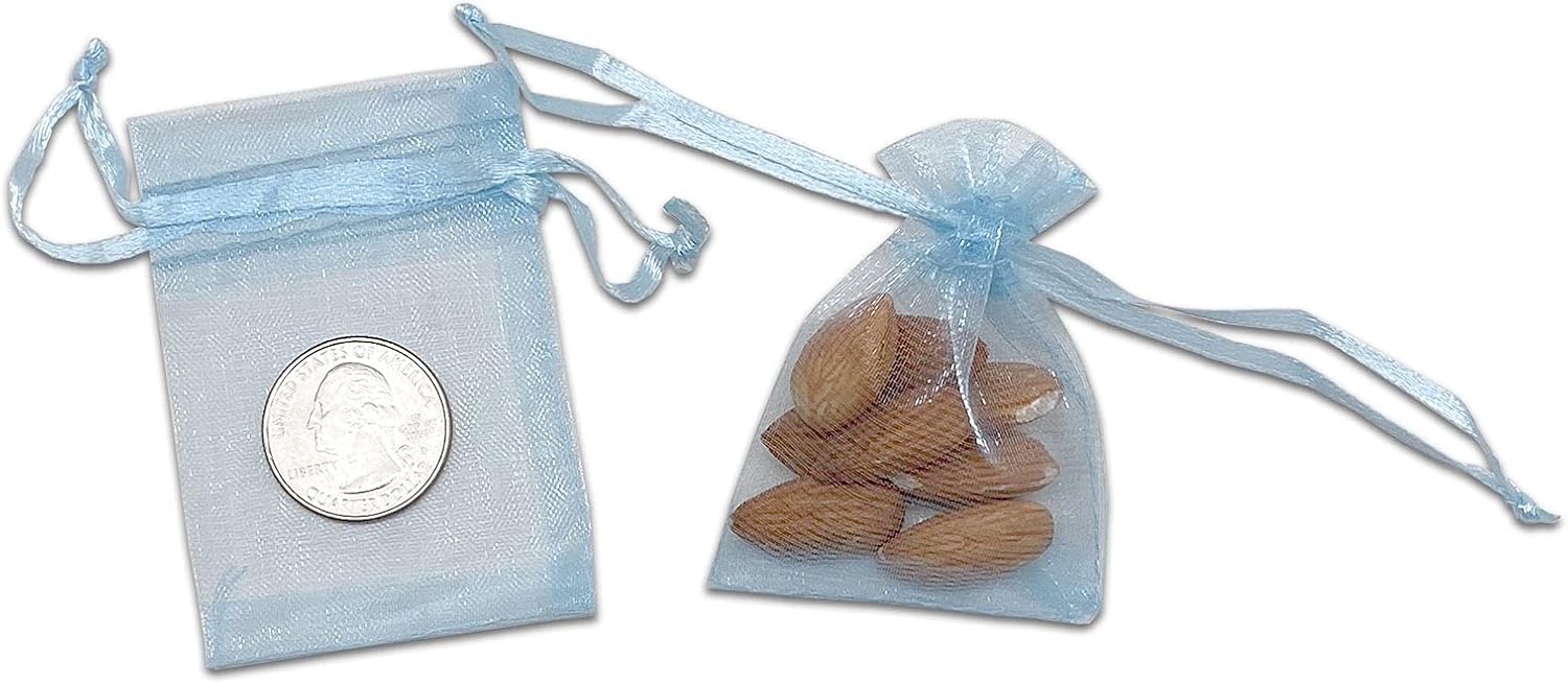 TheDisplayGuys 100-Pack XS 2x2 3/4" Blue Sheer Organza Gift Bags with Drawstring, Jewelry Candy Treat Wedding Party Favors Mesh Pouch