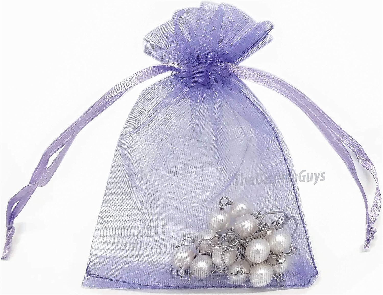 TheDisplayGuys 100-Pack 3x4 Lavender Sheer Organza Gift Bags with Drawstring, Jewelry Candy Treat Wedding Party Favors Mesh Pouch