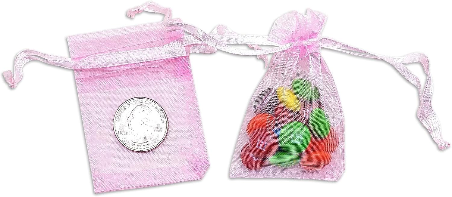 TheDisplayGuys 100-Pack XS 2 x 2 3/4" Pink Sheer Organza Gift Bags with Drawstring, Jewelry Candy Treat Wedding Party Favors Mesh Pouch