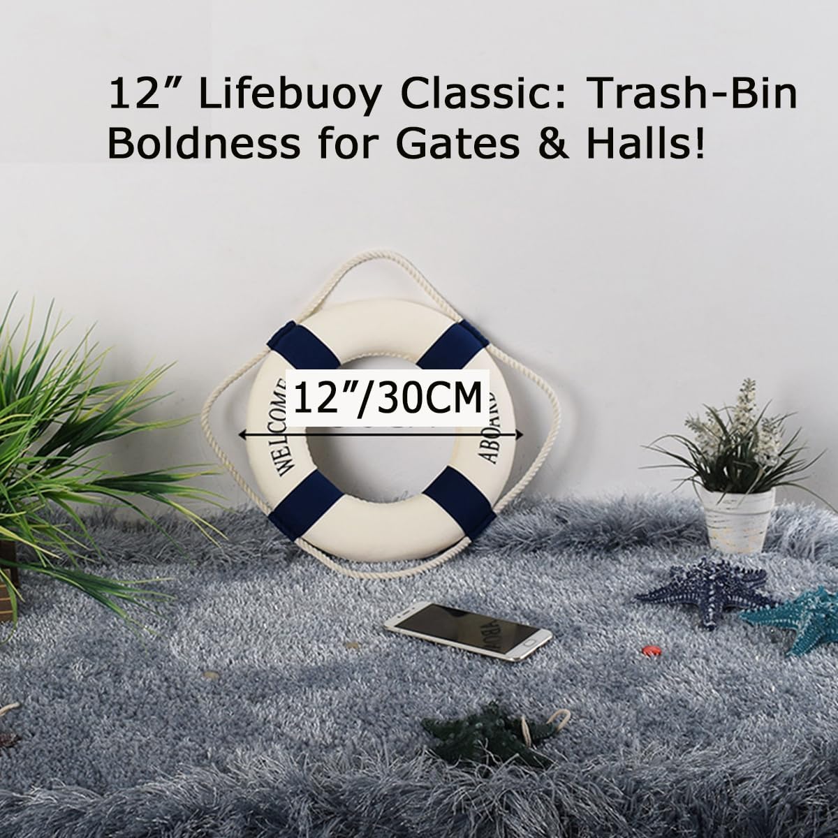 MorroMorn Lifebuoy Wall Hanging Decor - Welcome Aboard Mediterranean Style Home Decoration (Navy, 12")
