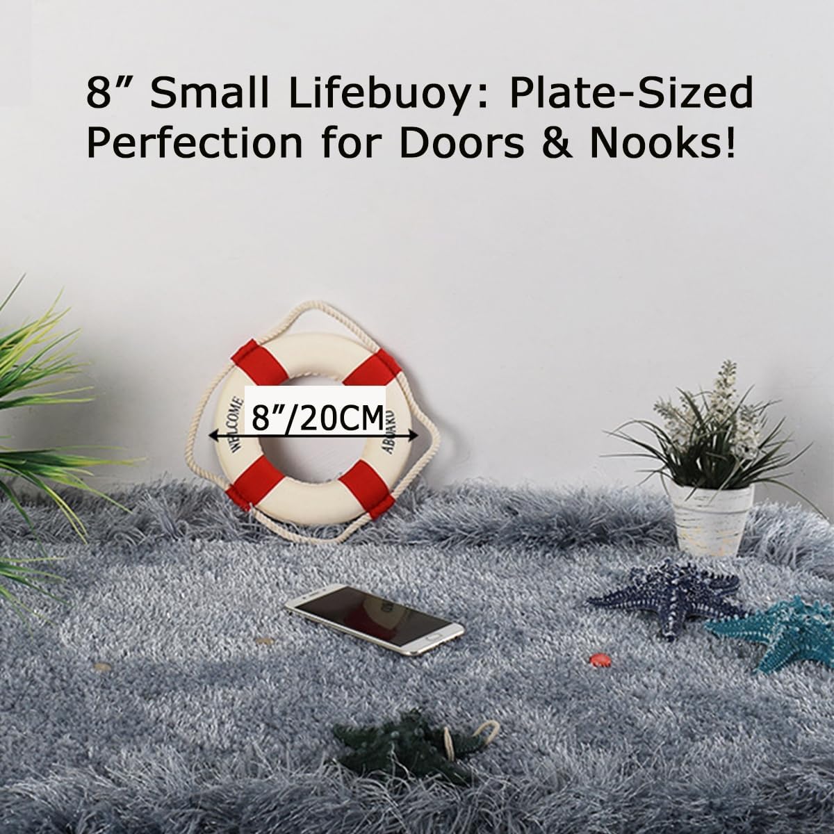MorroMorn Lifebuoy Wall Hanging Decor - Welcome Aboard Mediterranean Style Home Decoration (Red, 8")