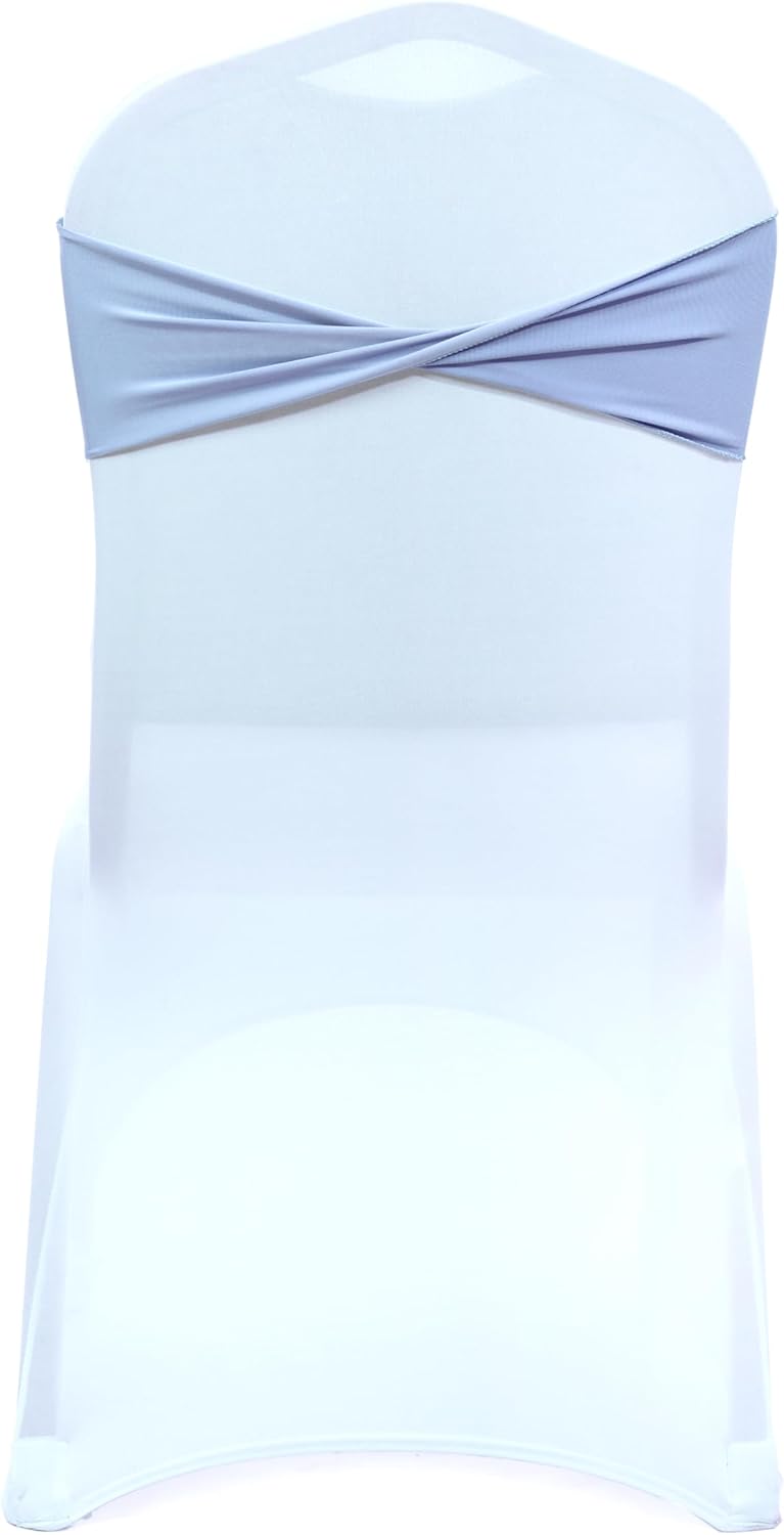 MDS Pack of 25 Spandex Chair Sashes Bows Elastic Stretch Dining Chair Bands Ties Without Slider Buckle Universal fits for Wedding Baby Shower Birthday Party Banquet Event Decoration - Baby Blue